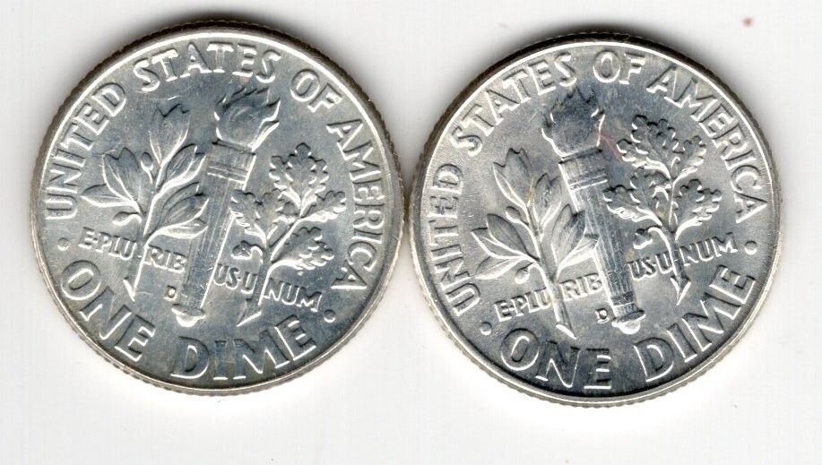 SET OF TWO 1963-D Roosevelt Dime BU+