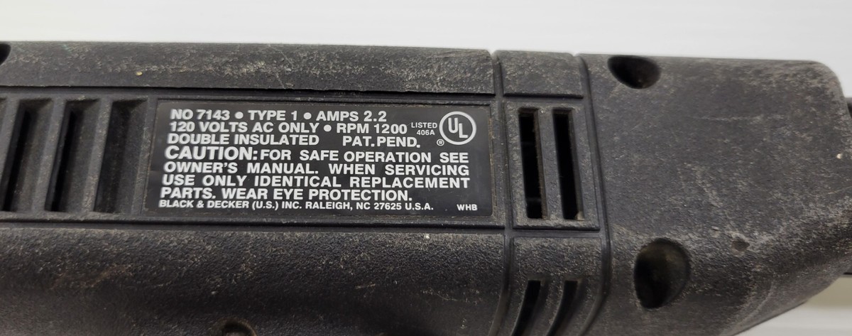 PV) Vintage Black & Decker 3/8" Single Speed Drill Model 7143 Type 1