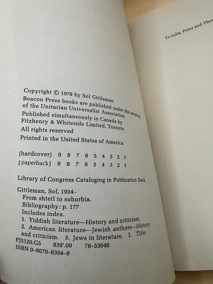 From Shtetl to Suburbia Sol Gittleman 1978 First Edition Beacon Press PB