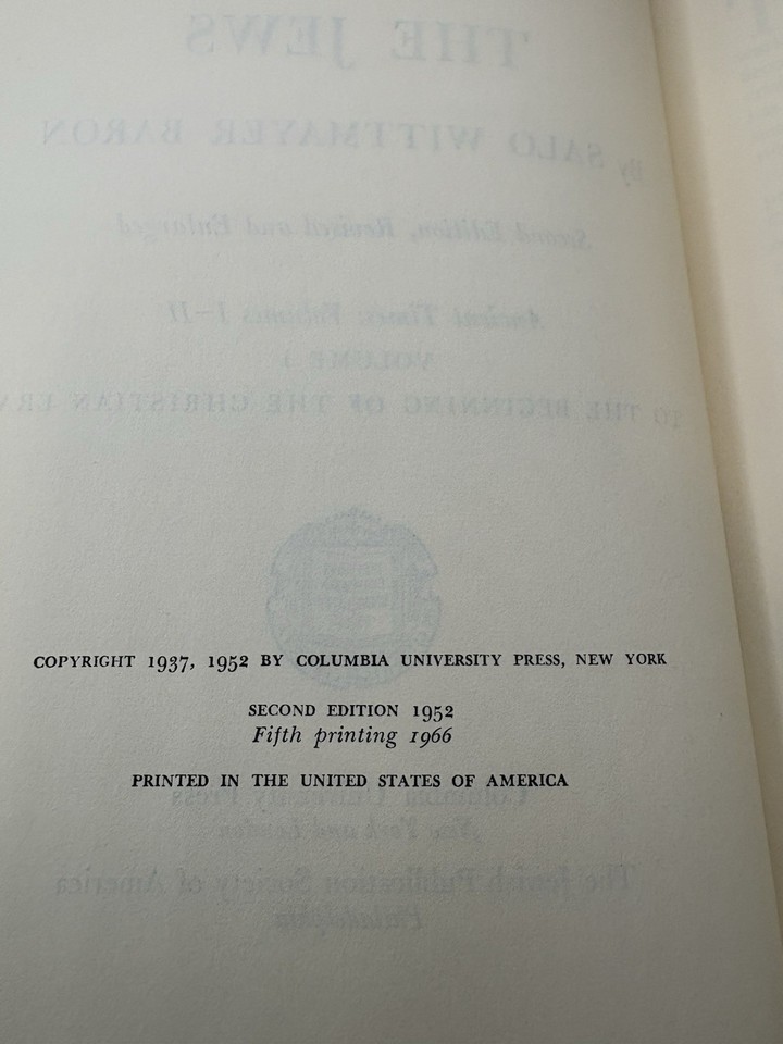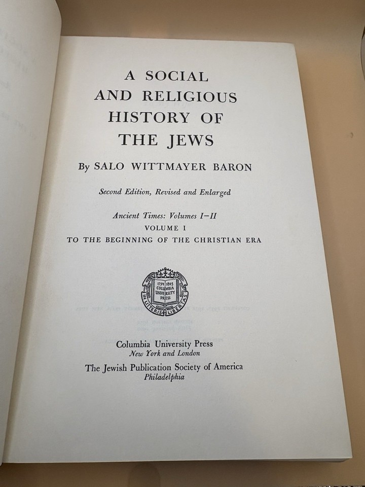 1952 Social & Religious History of the Jews – Baron – Vol. I - 2nd Ed