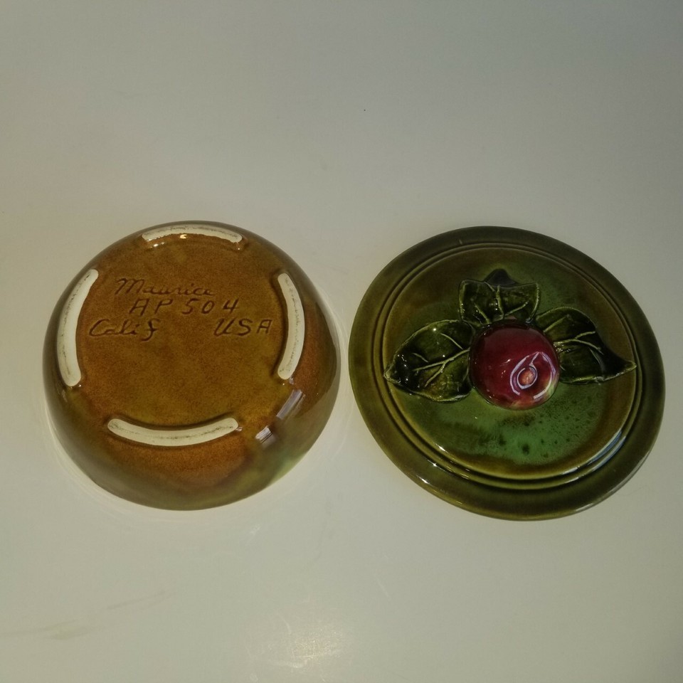 Maurice California Pottery Lidded Bowl Dish AP504 Apple USA EUC