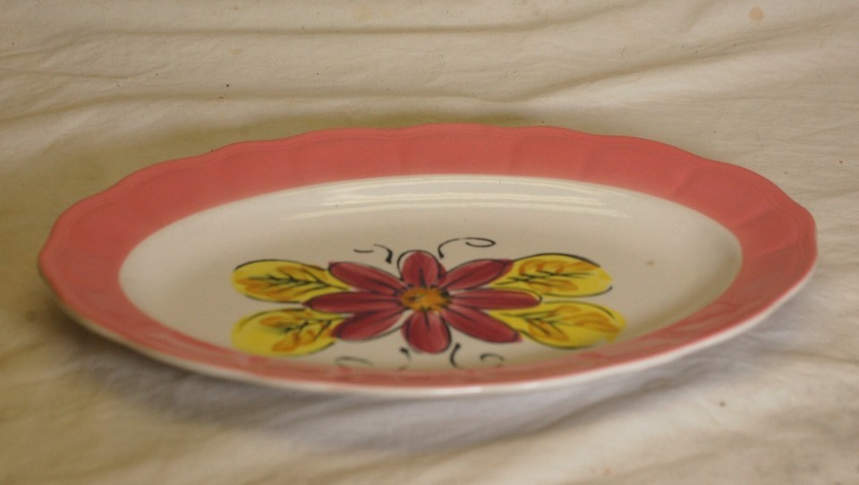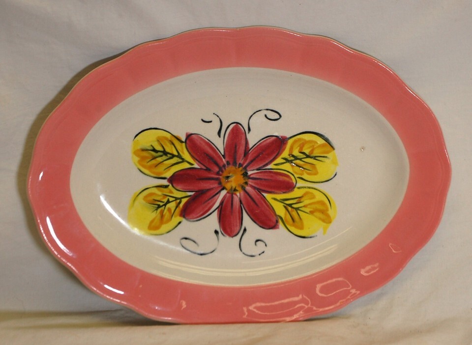 Oval Serving Platter Dinnerware Pink & Yellow Floral Japan