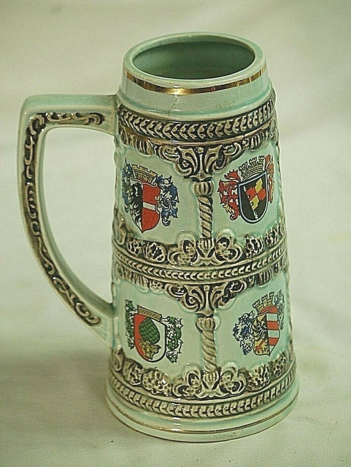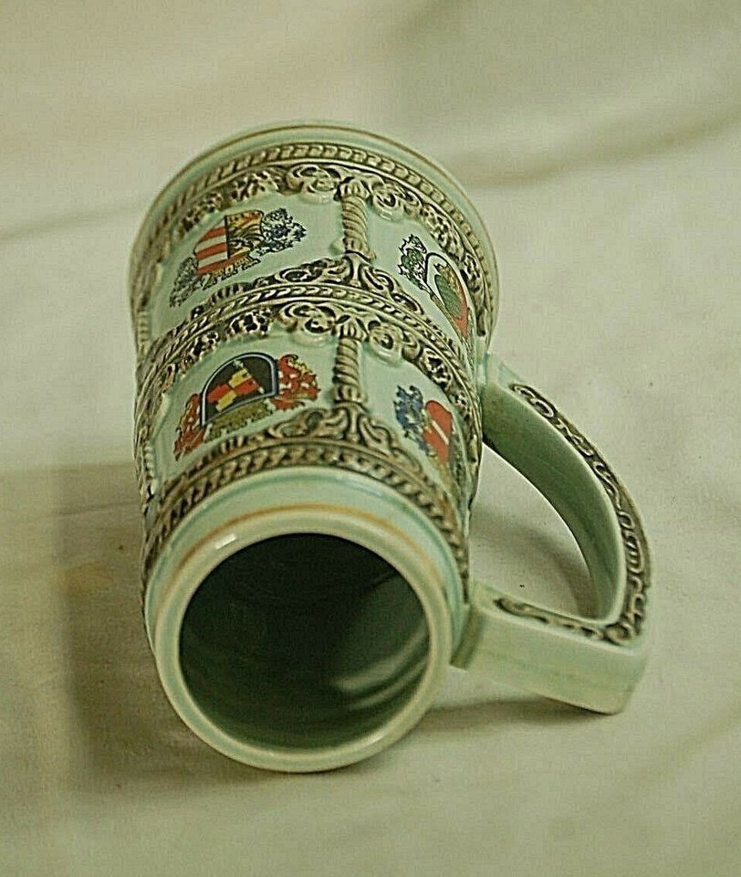 Vintage Apex Quality Beer Stein Mug Tankard German Coates of Arms Shields Japan
