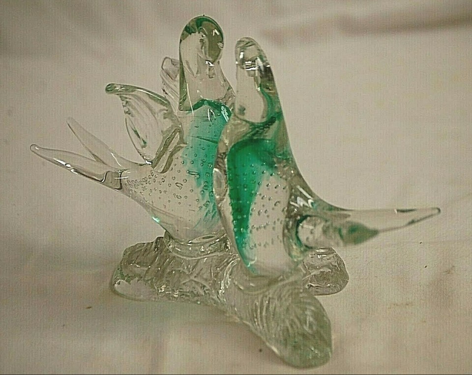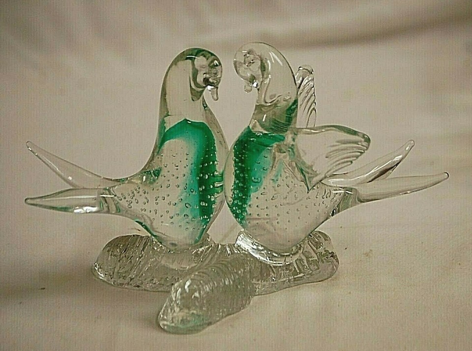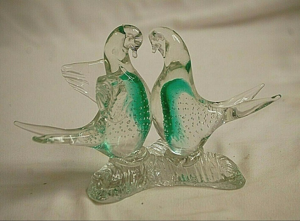 Blown Art Clear Glass Green Swirls Split Tailed Bird Figurine Controlled Bubbles