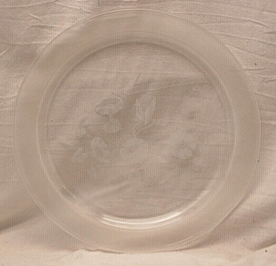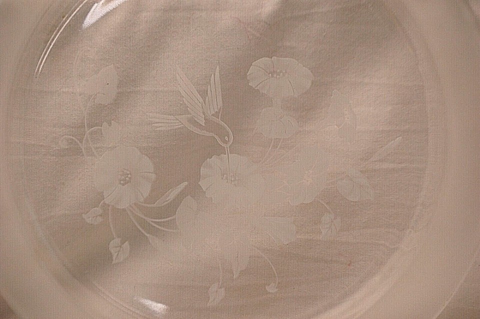 Clear Glass Platter Frosted Hummingbird Flowers & Rim