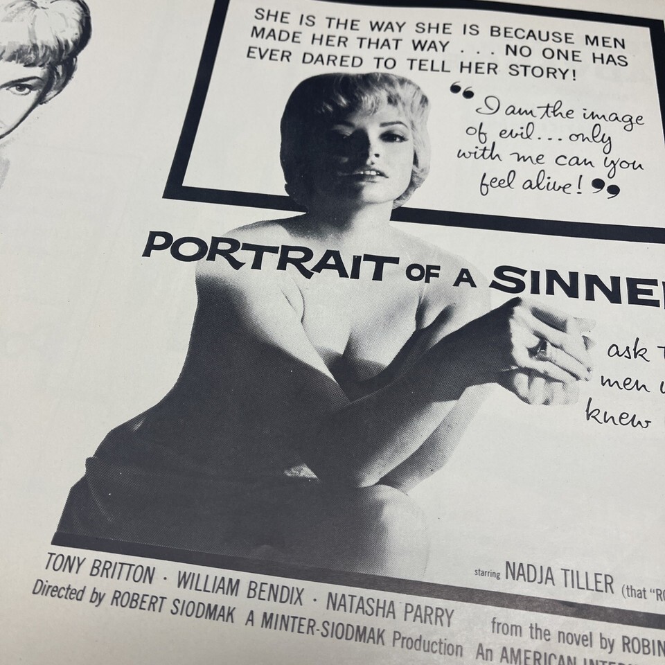 Portrait Of A Sinner Original Movie Press Kit Poster 1961 JD American Int.