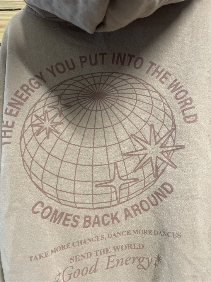 Mighty Fine The Energy You Put Into the World Hoodie Sweatshirt Woman's Sz S KG