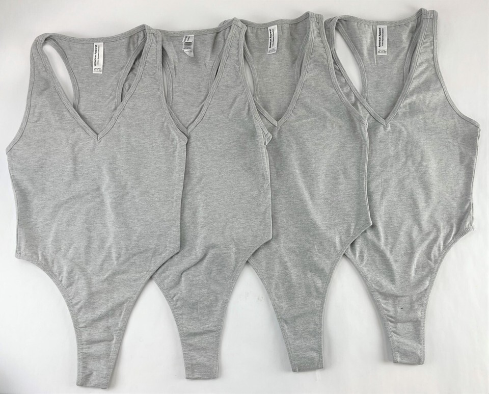 4 Pack Women's Bodysuits Cotton Spandex Halter Thong by American Apparel, Gray