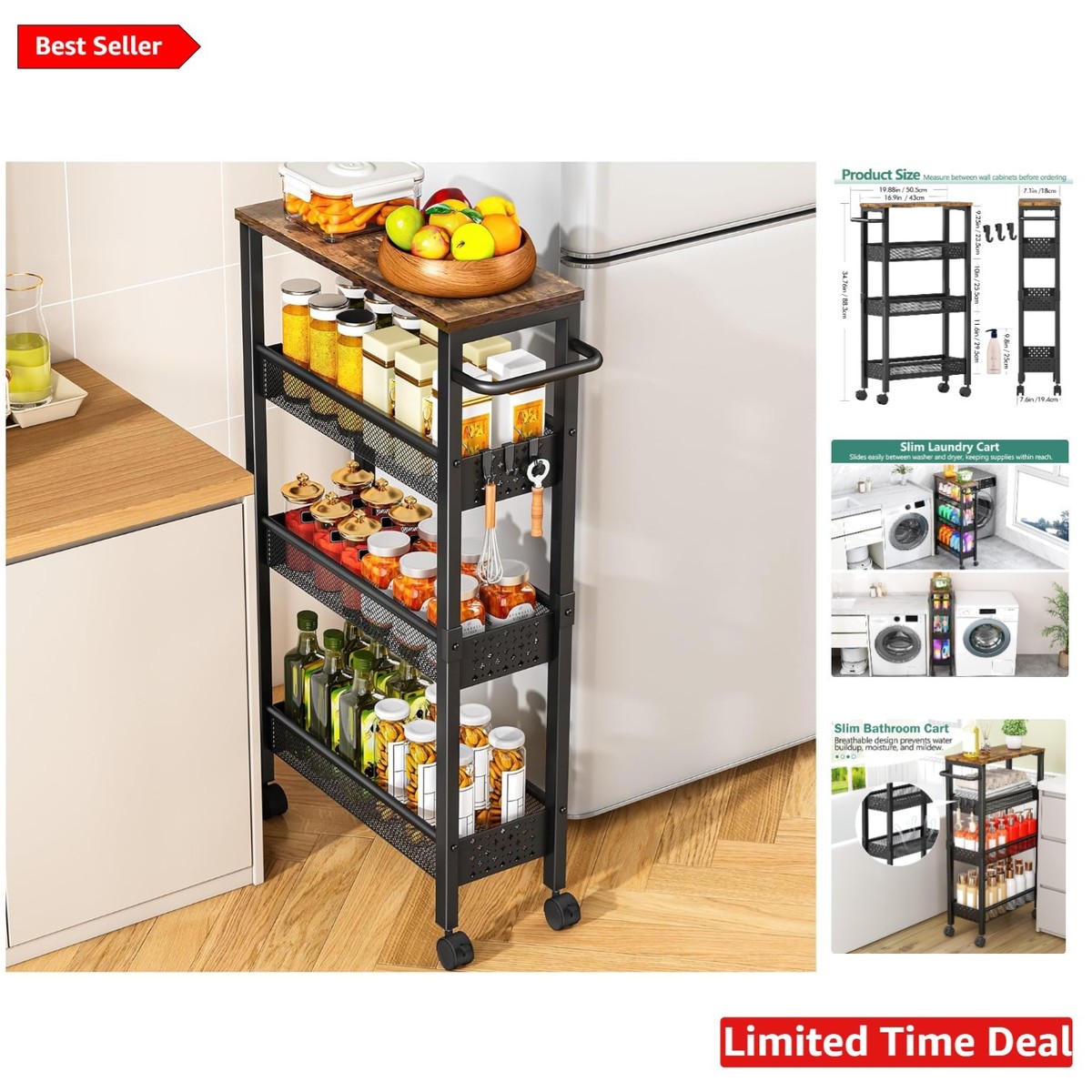 Design for Narrow Spaces: This 4-tier slim cart at just 7.1 inches wide is designed to slide into tight spaces?perfect between your washer and dryer or alongside cabinets.