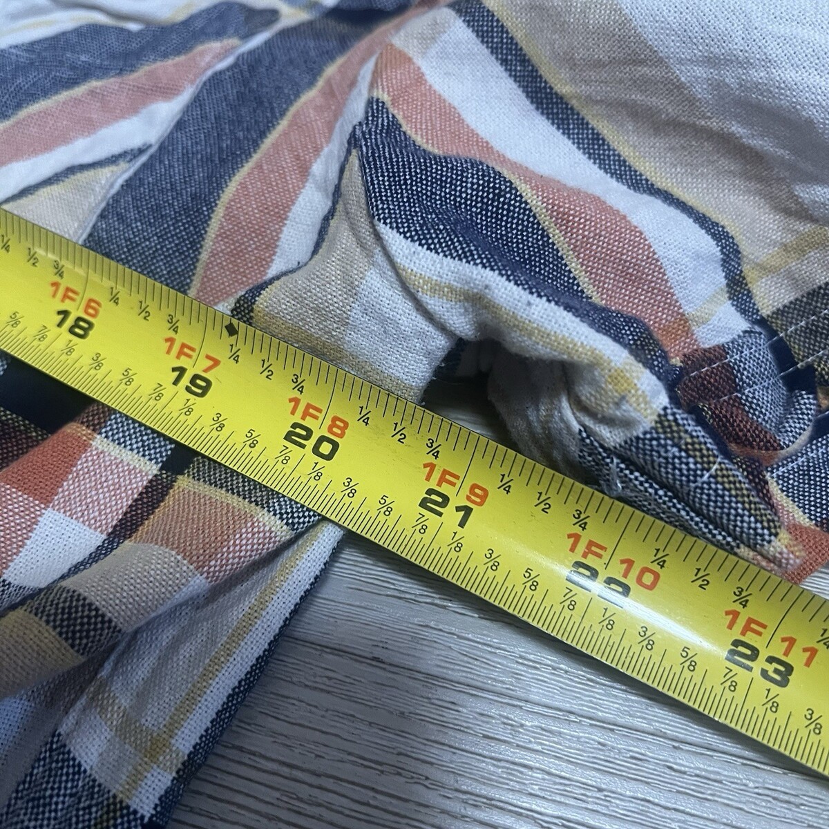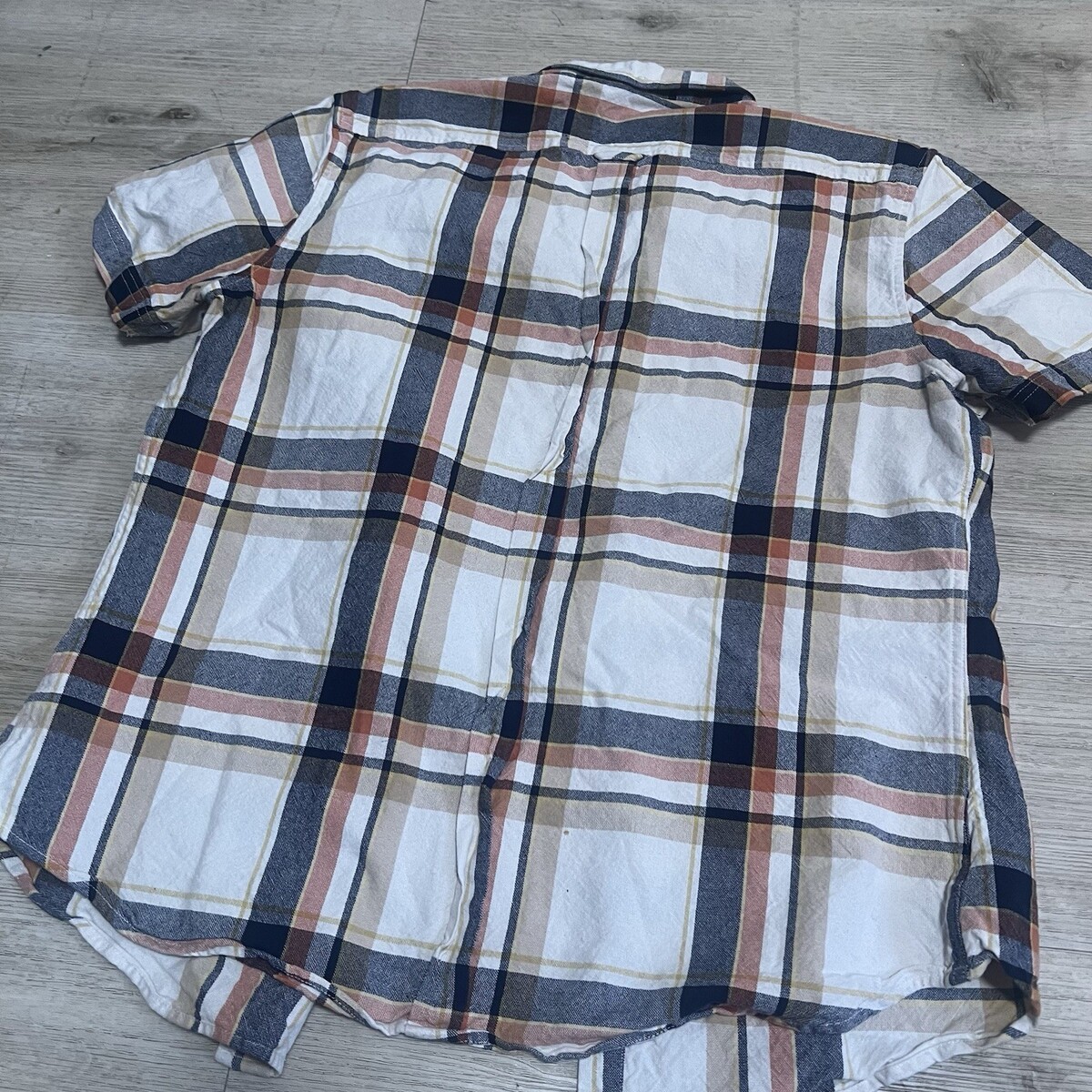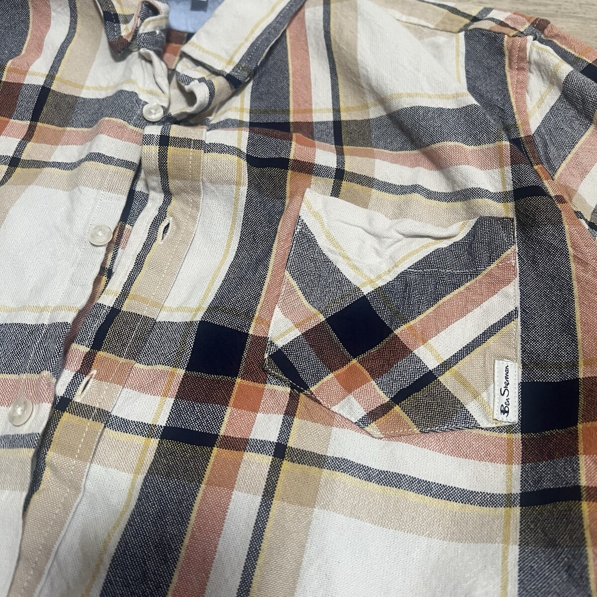 The Ben Sherman Men?s Sz XL Button Up Shirt in White Blue Orange Beige is a stylish and versatile addition to any man's wardrobe. This short sleeve shirt features a classic collar and button closure, perfect for a casual but put-together look. Made of breathable cotton fabric, it is easy to care for and suitable for various seasons. The plaid pattern and punk, 90s-inspired theme add a rebellious touch to the outfit, making it a standout choice for men looking to express their individual style.