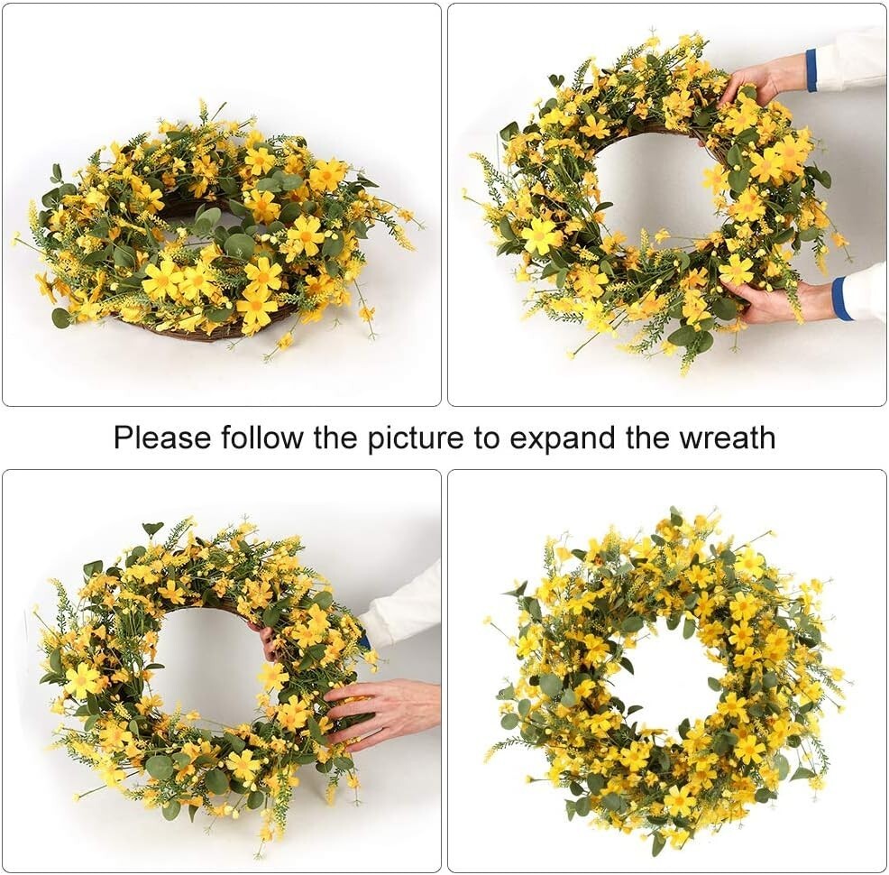 22-Inch Grapevine Daisy Wreath - Easy-Clean Spring Decor for Home Outdoors