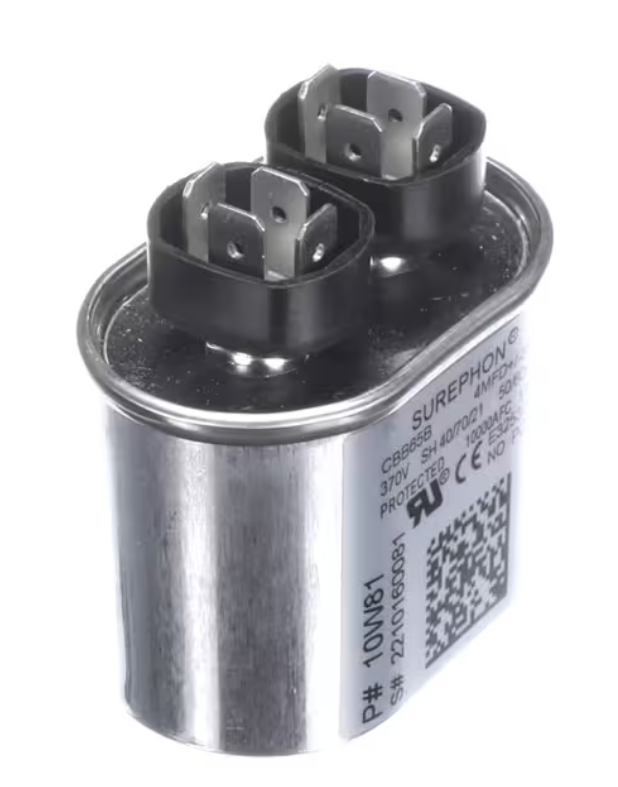 Lennox 10W81 / 2210160081 Run Capacitor is a genuine OEM electrical component designed to support smooth motor operation and reliable HVAC performance. This oval run capacitor features a 4 MFD rating with 5% tolerance and is rated for 370V, 50/60Hz operation. It helps provide the proper electrical boost needed for efficient motor performance, reduced strain on components, and stable system operation. Built to Lennox specifications, it delivers dependable performance, precise capacitance, and long-lasting durability.