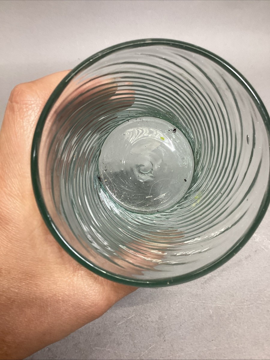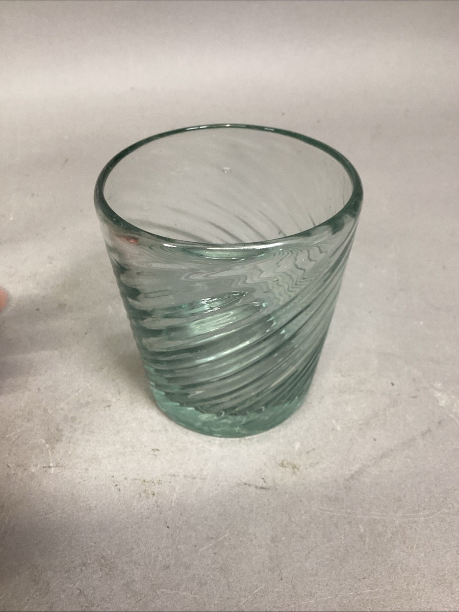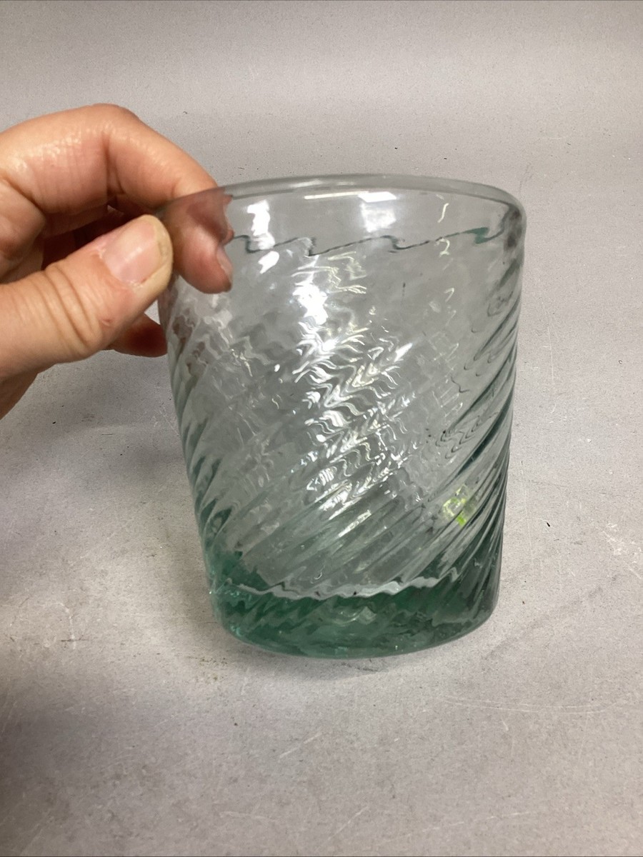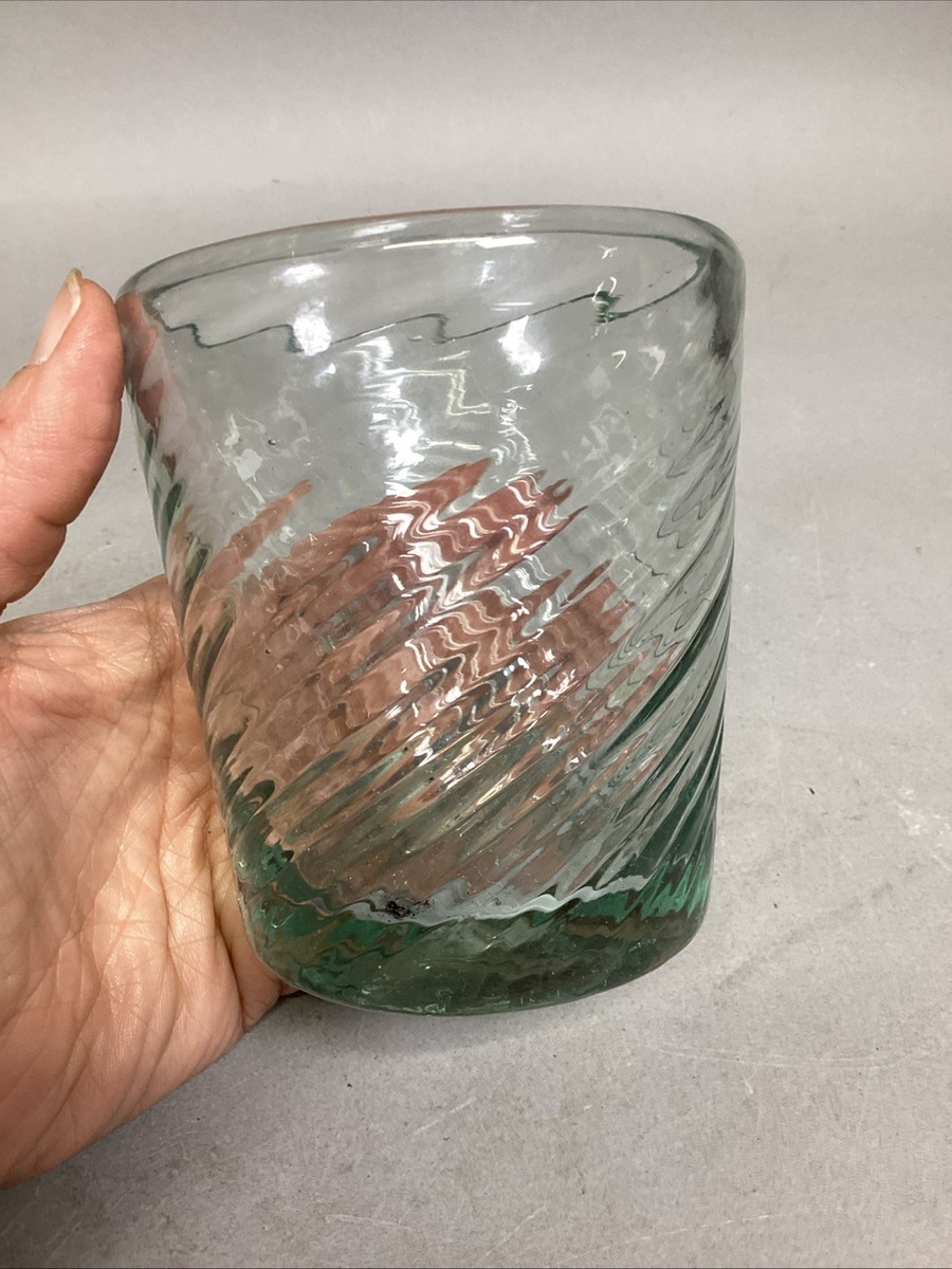 Set of 2 Vintage Swirl Design Hand Blown Art Glass Tumblers. In used condition.