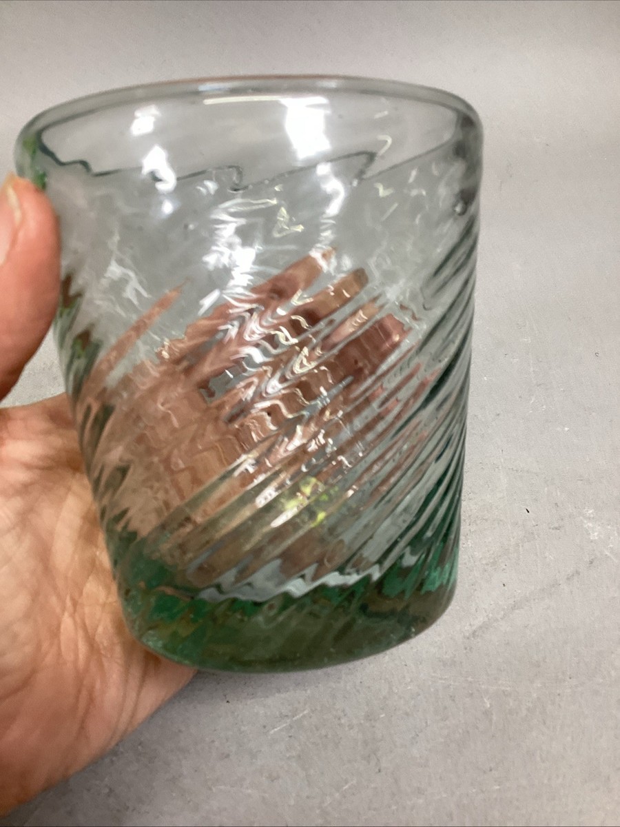Set of 2 Vintage Swirl Design Hand Blown Art Glass Tumblers