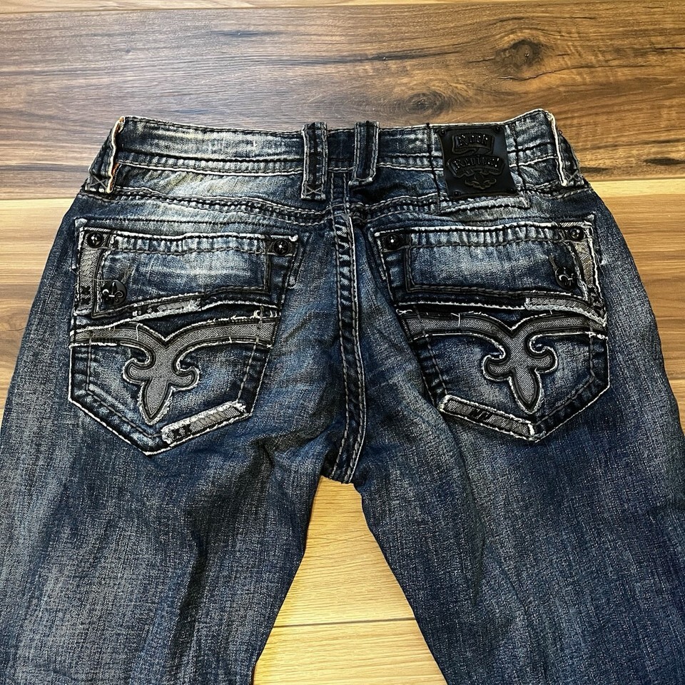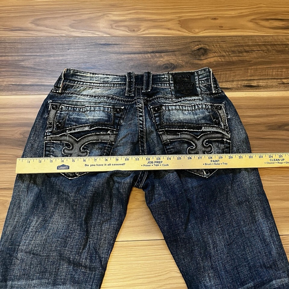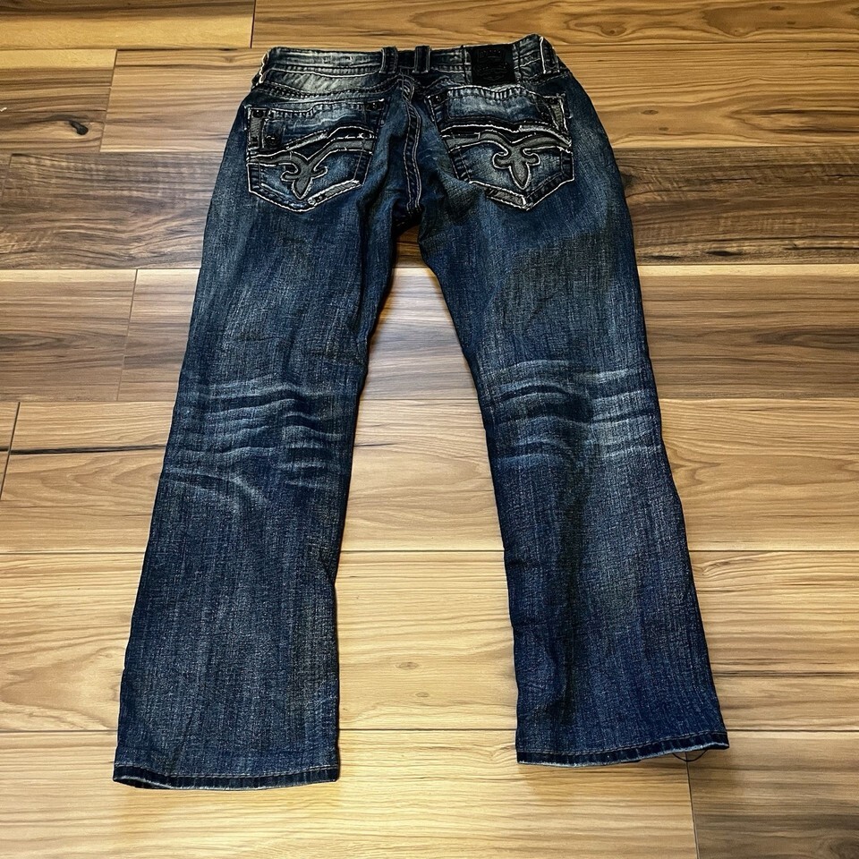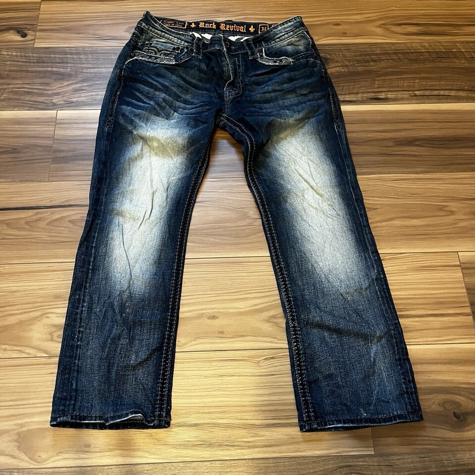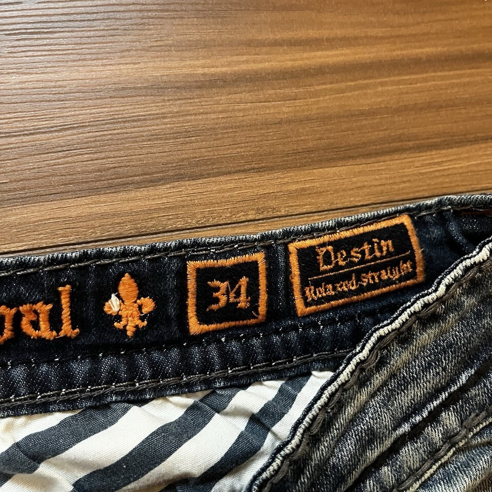 Rock Revival Men’s Destin Relaxed Straight Dark Wash Embellished Jeans Size 34