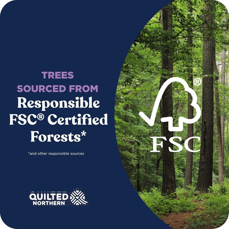 Bring elevated comfort to your bathroom with Quilted Northern Ultra Plush toilet paper. Each roll is crafted with three cushiony layers to deliver a soft, cozy feel every time. It?s 3X thicker and 3X more absorbent than the leading value brand toilet paper, giving you the signature softness you love while reducing what you don?t?lint! Made from responsibly sourced trees, it?s a choice you can feel good about. Each pack includes 6 Ultra Plush rolls, with 255 3-ply sheets per Mega Roll? totaling 1,530 sheets!