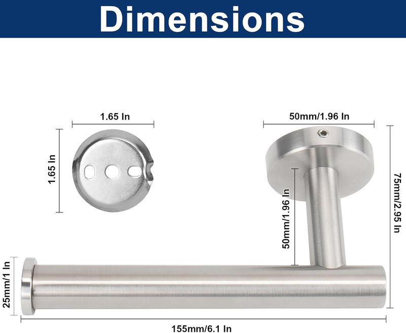WIDELY USE SIZE: Length of paper holder is 6-inch. And the distance to the wall is 3-Inch. Large enough to fits large rolls of toilet paper. One arm style doesn't limited Installation direction, can choose mounting it left, right or vertically in everywhere. It can also hang kitchen paper and small towels.