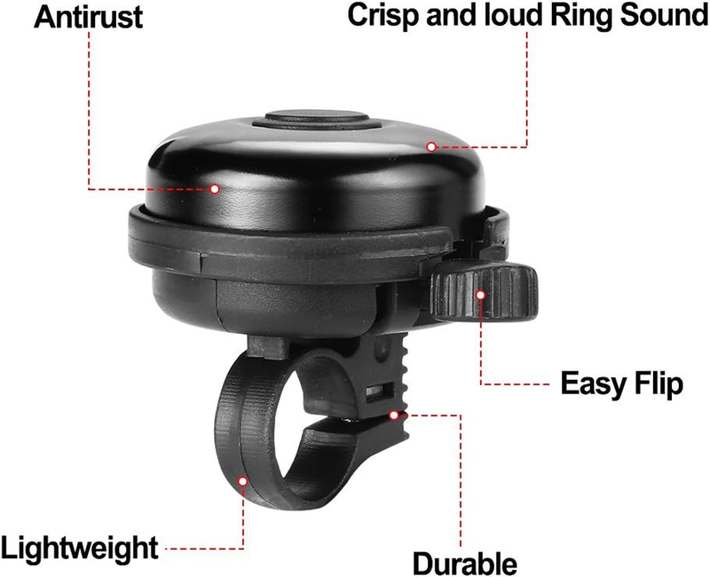 LOUD WARNING BELL: The aluminum bicycle ring bell is special designed for mountain bikes and road bikes as a safety warning bell. The bike bells will fit most mountain bikes and road bikes very well and put out a crisp bike ringtone to be heard clearly.