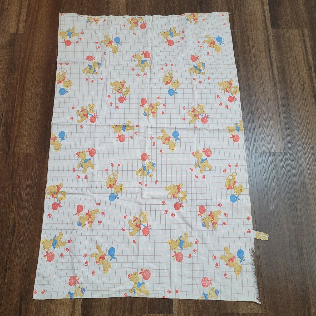Dundee Vintage Baby Blanket Cotton Flannel Hobo Tramp Teddy Bear Red White Blue