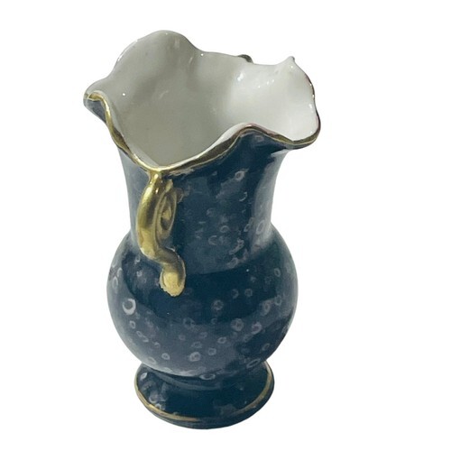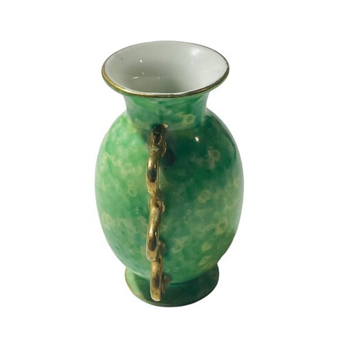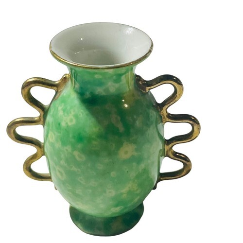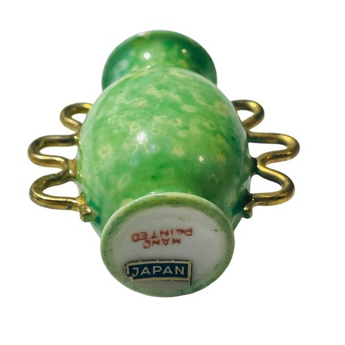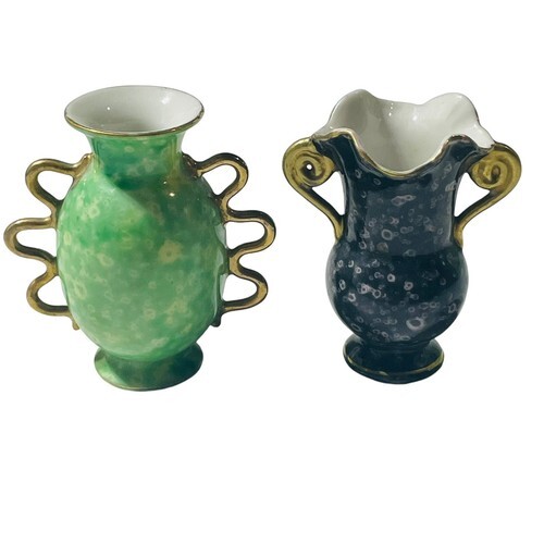 Vtg Set Of 2 Hand Painted Porcelain Mini Handled Vases Urns Green Blue Japan