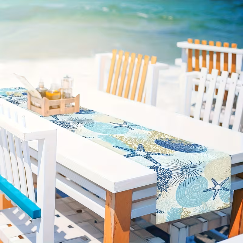 This Tropical Vibe Ocean Beach Theme Table Runner by Modern Linens is a perfect addition to any indoor or outdoor dining space.