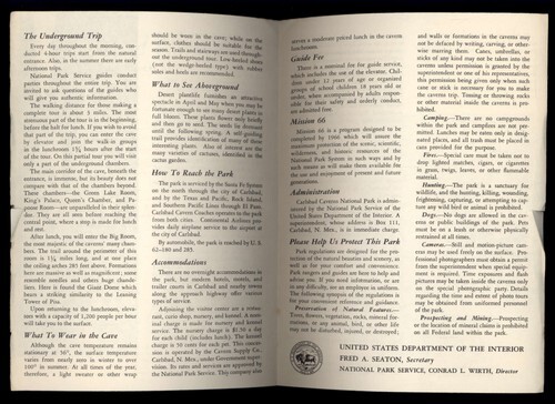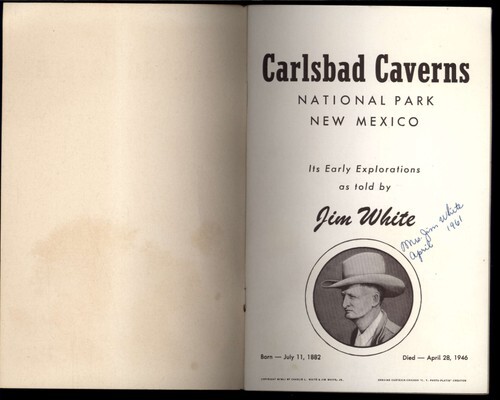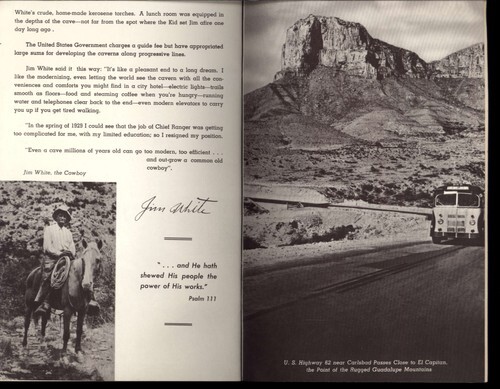 1961 JIM WHITE's STORY of CARLSBAD CAVERNS signed by Mrs. * 1958 park fold out