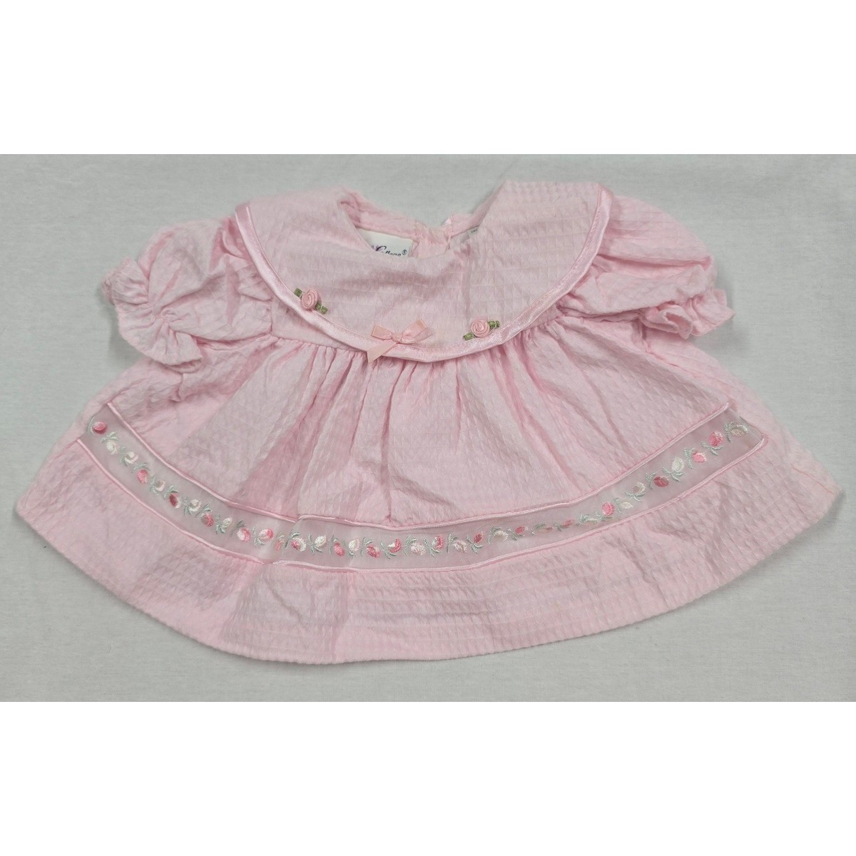 Rose Cottage Baby Girl Pink Easter Summer Floral Dress Bloomers Set 0-3 M VTG