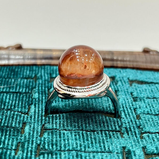 Indulge in the fiery beauty of this 100% Natural Red Hematoid Quartz ring. Known as "Red Gum Flower" crystal in Asia, this gemstone is celebrated for its unique, breathtaking iron-oxide inclusions that create a natural "flower" blooming inside the quartz.
