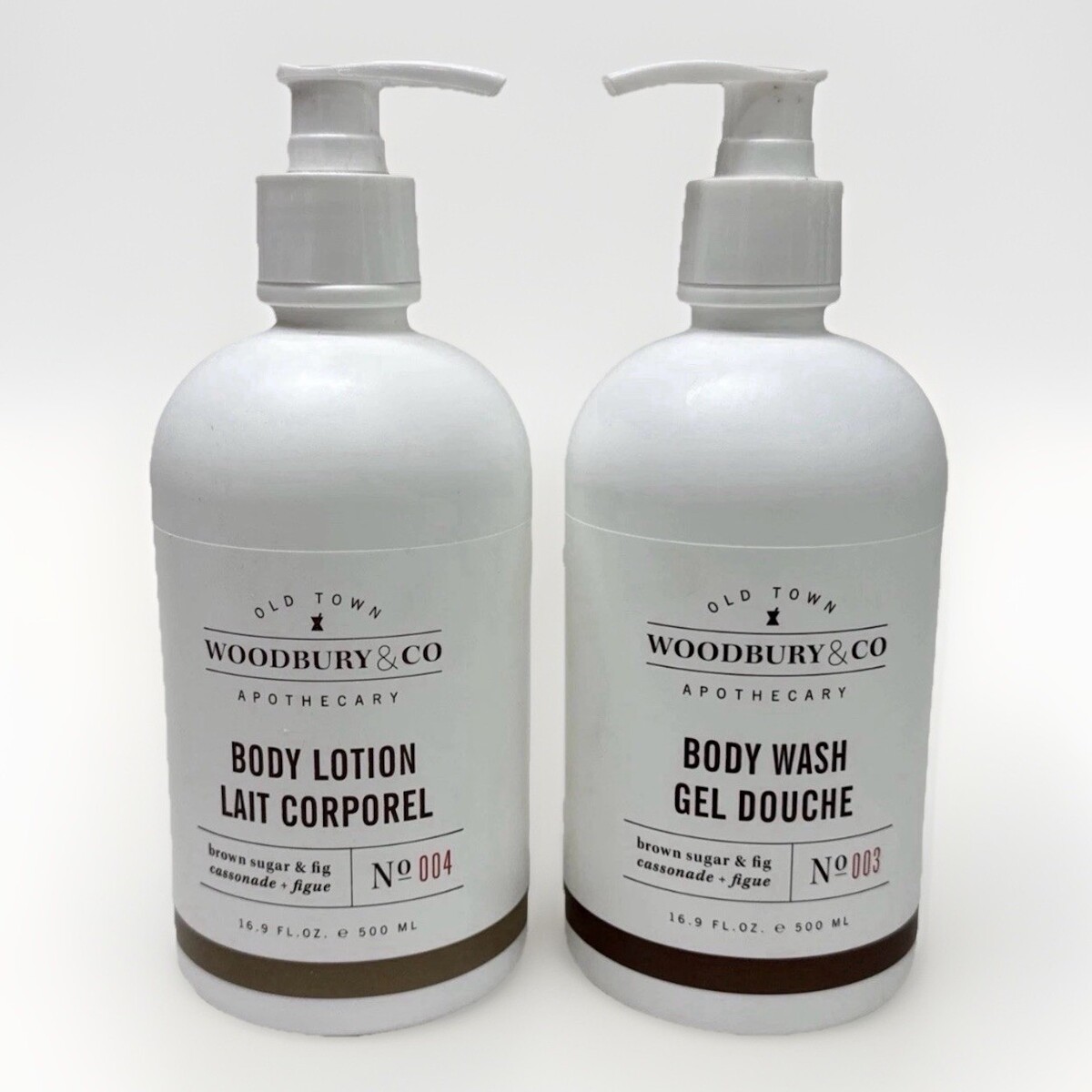 2 Bottles Woodbury & Co. BODY WASH & BODY LOTION 16.9oz Brown Sugar & Fig