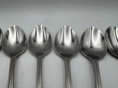 These teaspoons measure 6 1/8" in length and are in very good estate condition with no excessive wear.