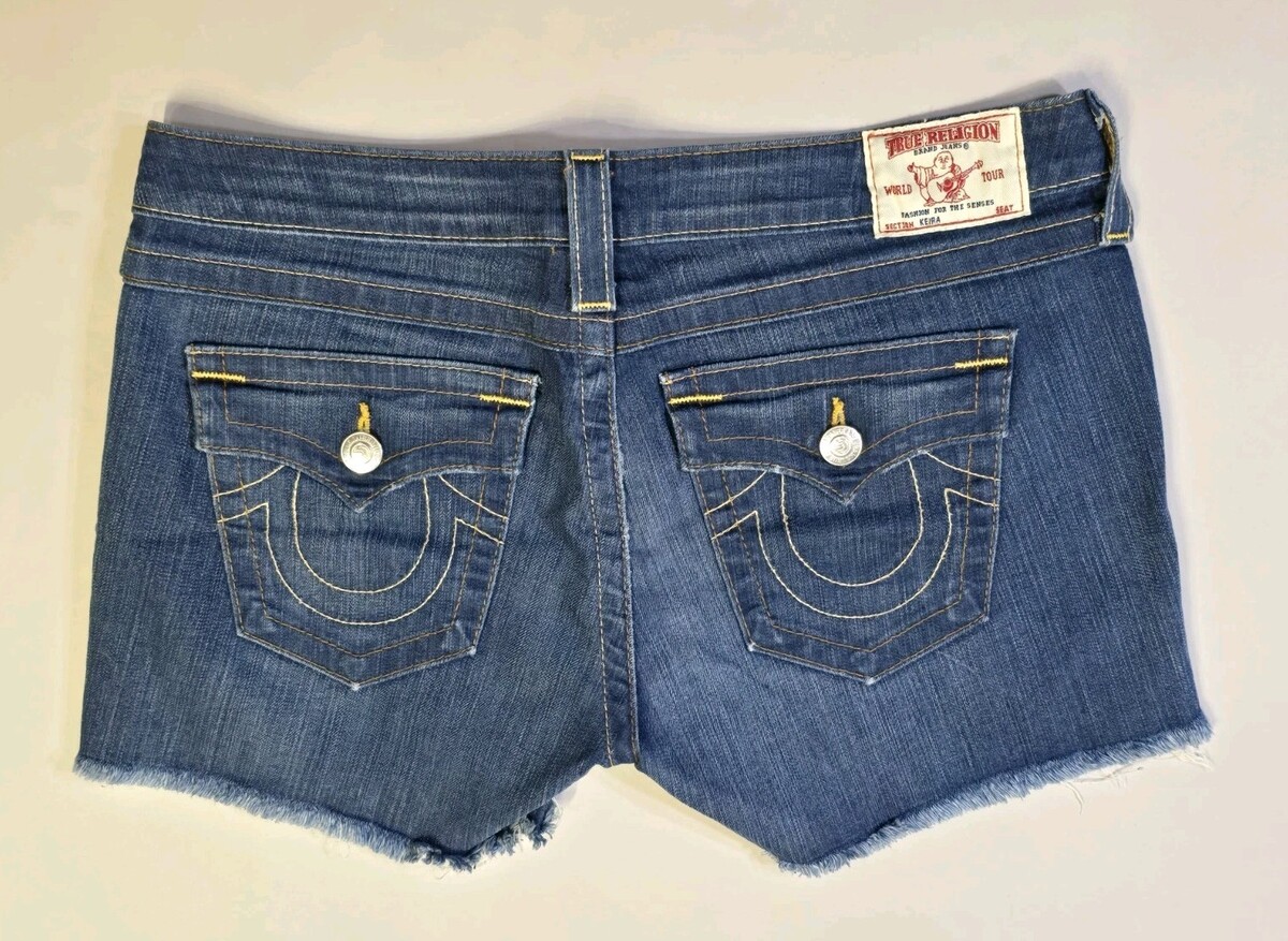 Vintage True Religion Women's Keira Sz. 32 Raw Hem Blue Jean Shorts Made In USA