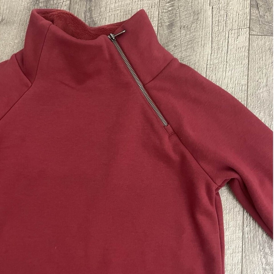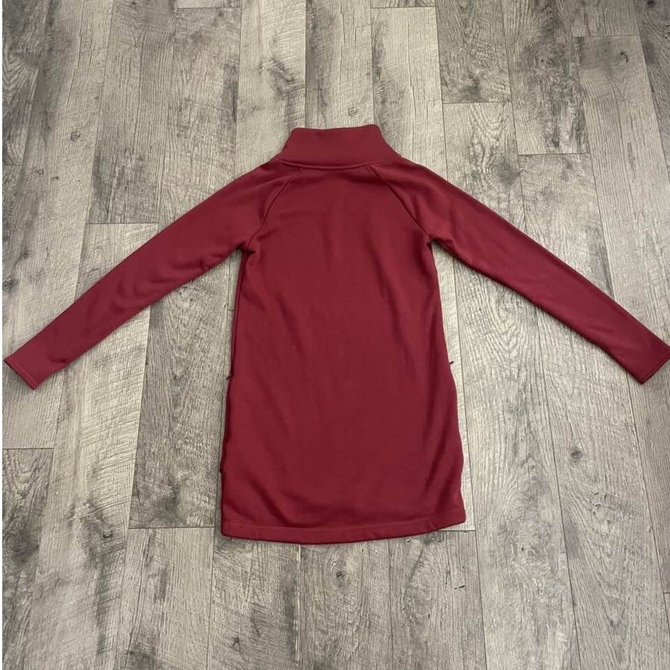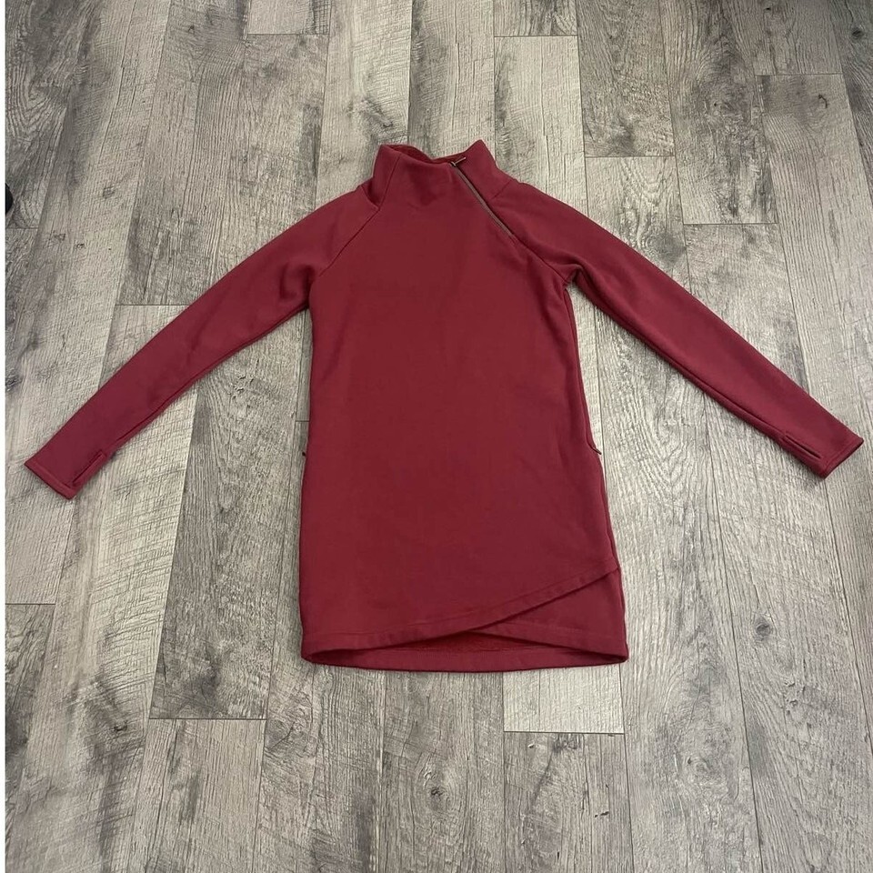 Athleta Cozy Karma Asym Pullover Dress Red Funnel Neck Side Zip Sweatshirt
