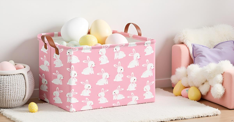 Rectangular Pink Easter Gift Basket Empty,Waterproof Easter Bunny Bakset for Egg Hunting(Pink Easter Bunny)