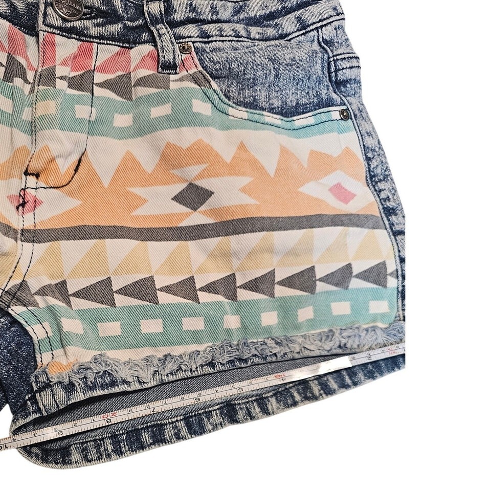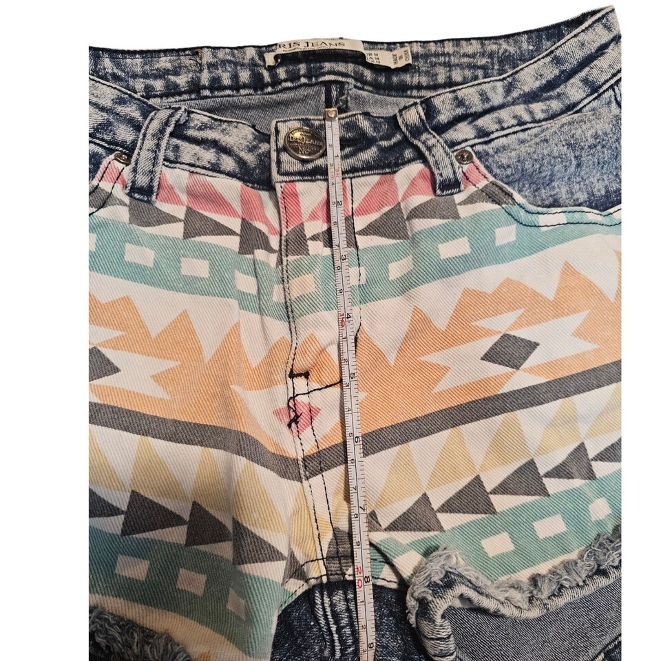 Iris Jeans Aztec Print Denim Shorts Women's Size Medium Distressed Frayed Hem
