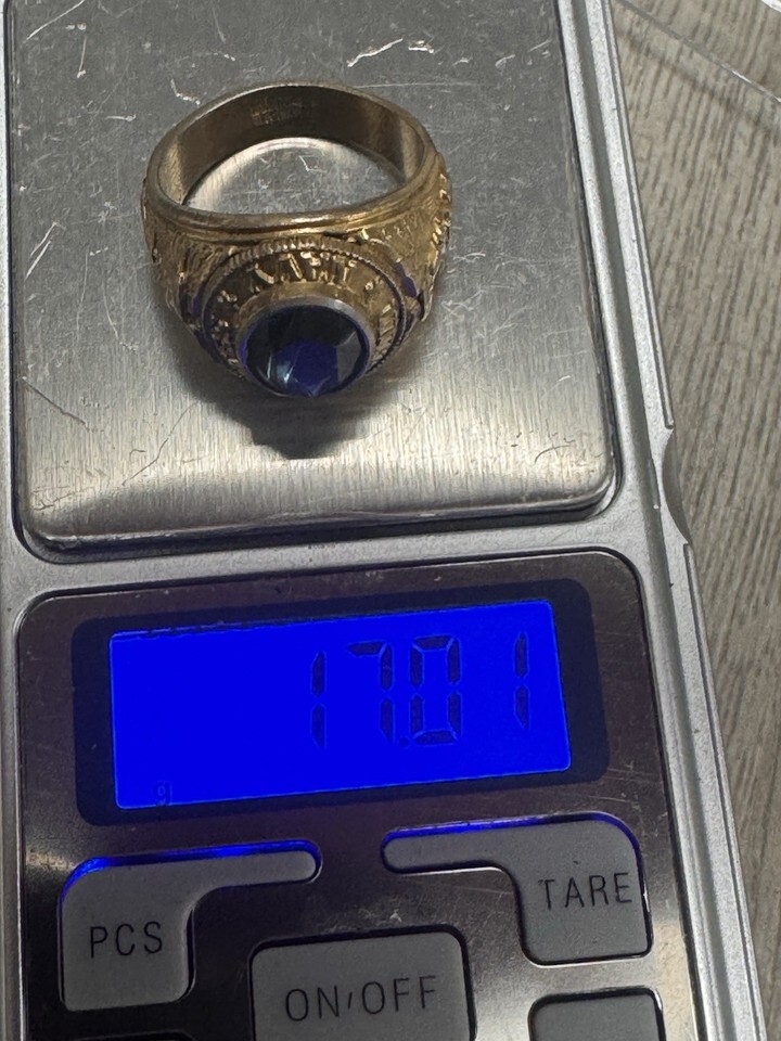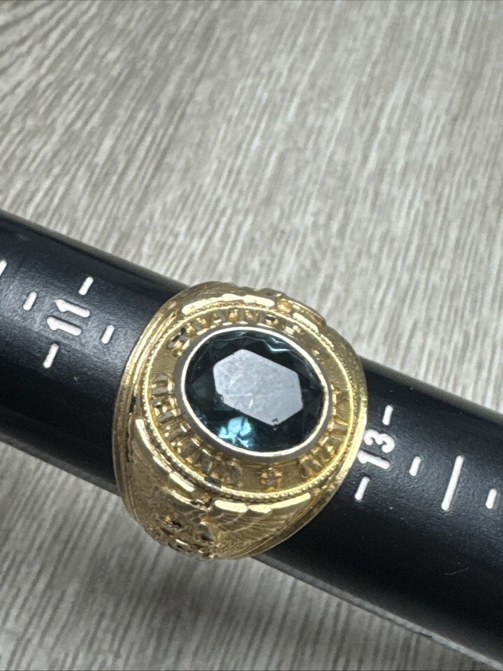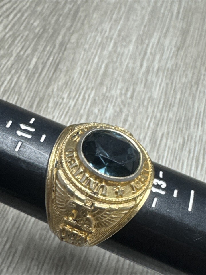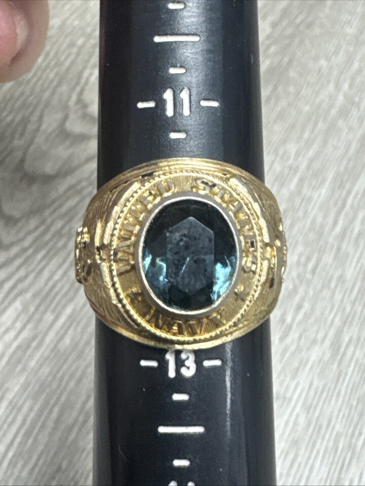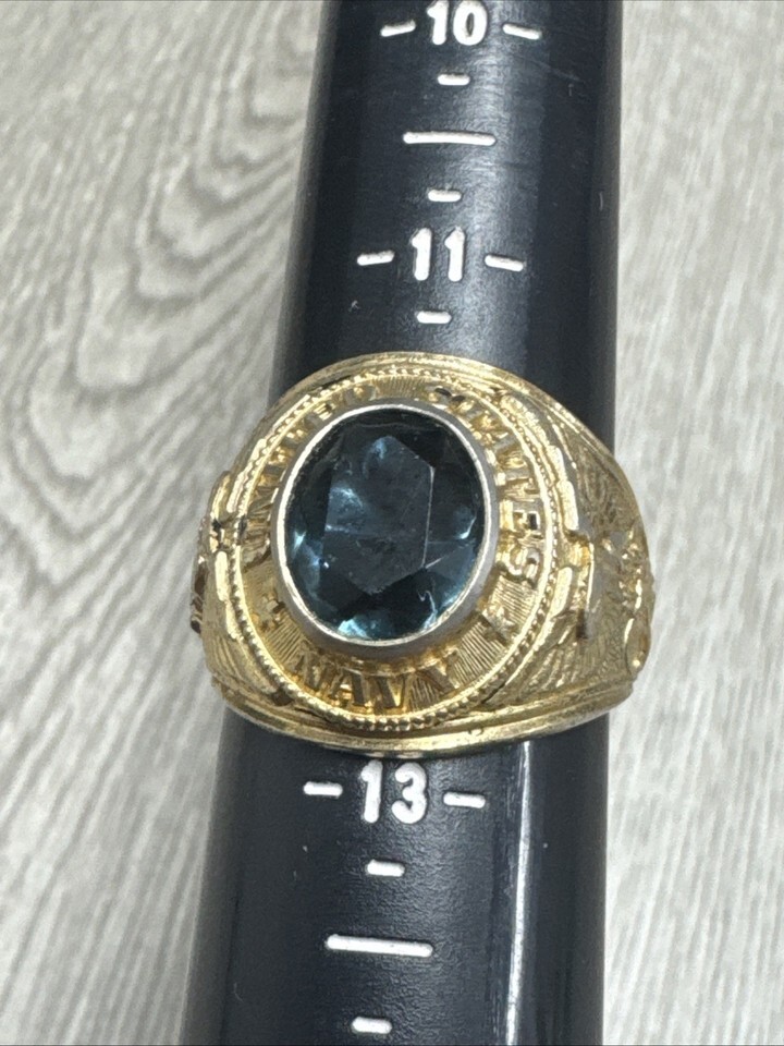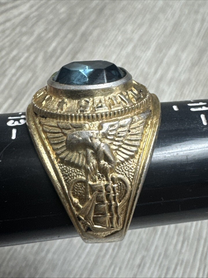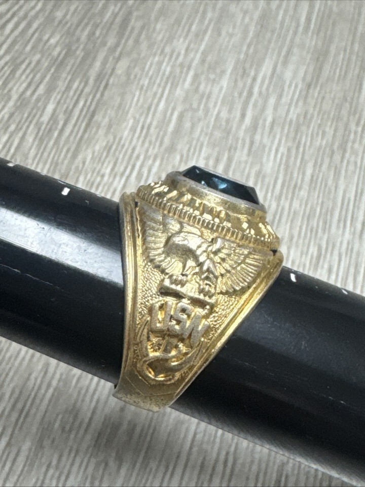 Vintage US Navy Blue Stone Ring Eagle Ancho 18K Gold Electroplate Size 12 JD