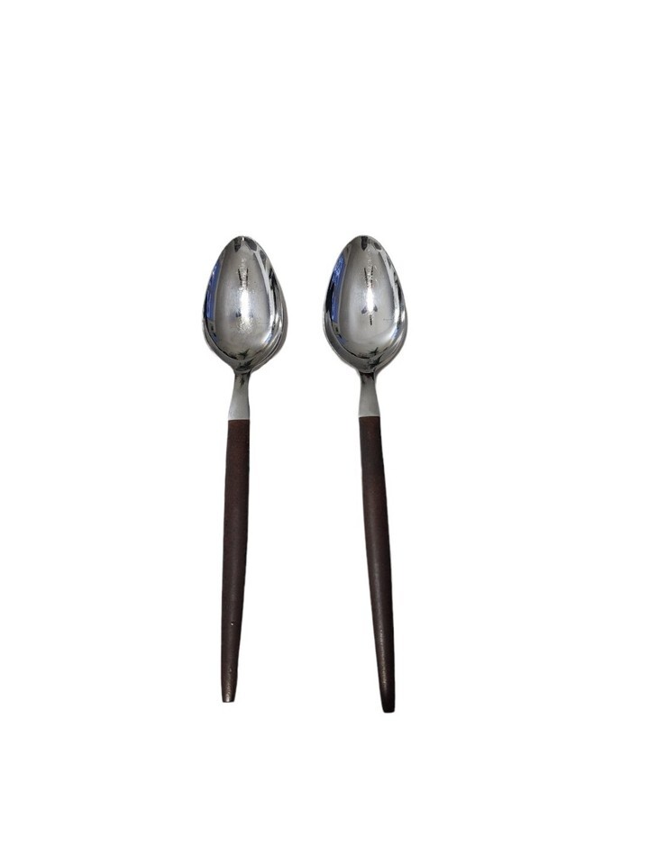 2x Ekco Eterna CANOE MUFFIN teaspoon MCM Stainless Flatware Faux Wood Handle