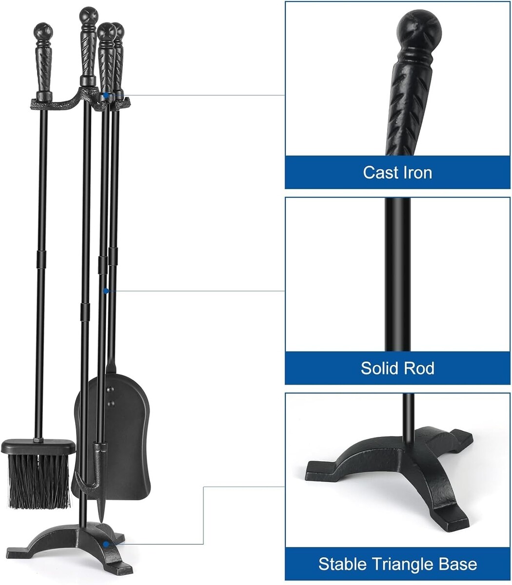 Durable Cast Iron Fire Tools with Stand - Complete Fireplace Tool Set for Homes