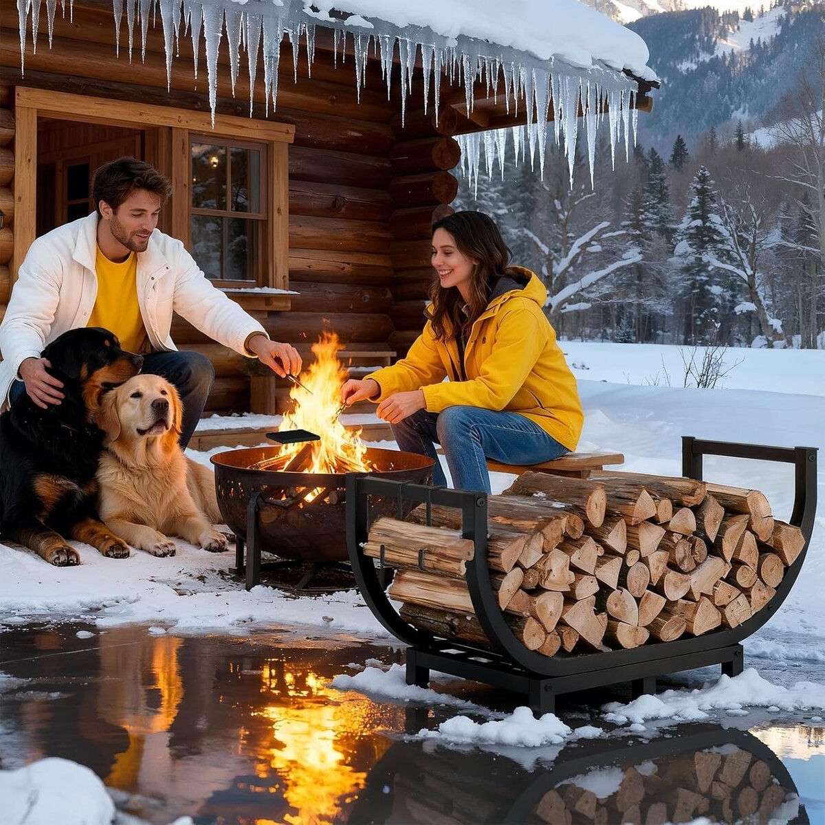Spacious 32-inch-wide design for ample firewood storage.