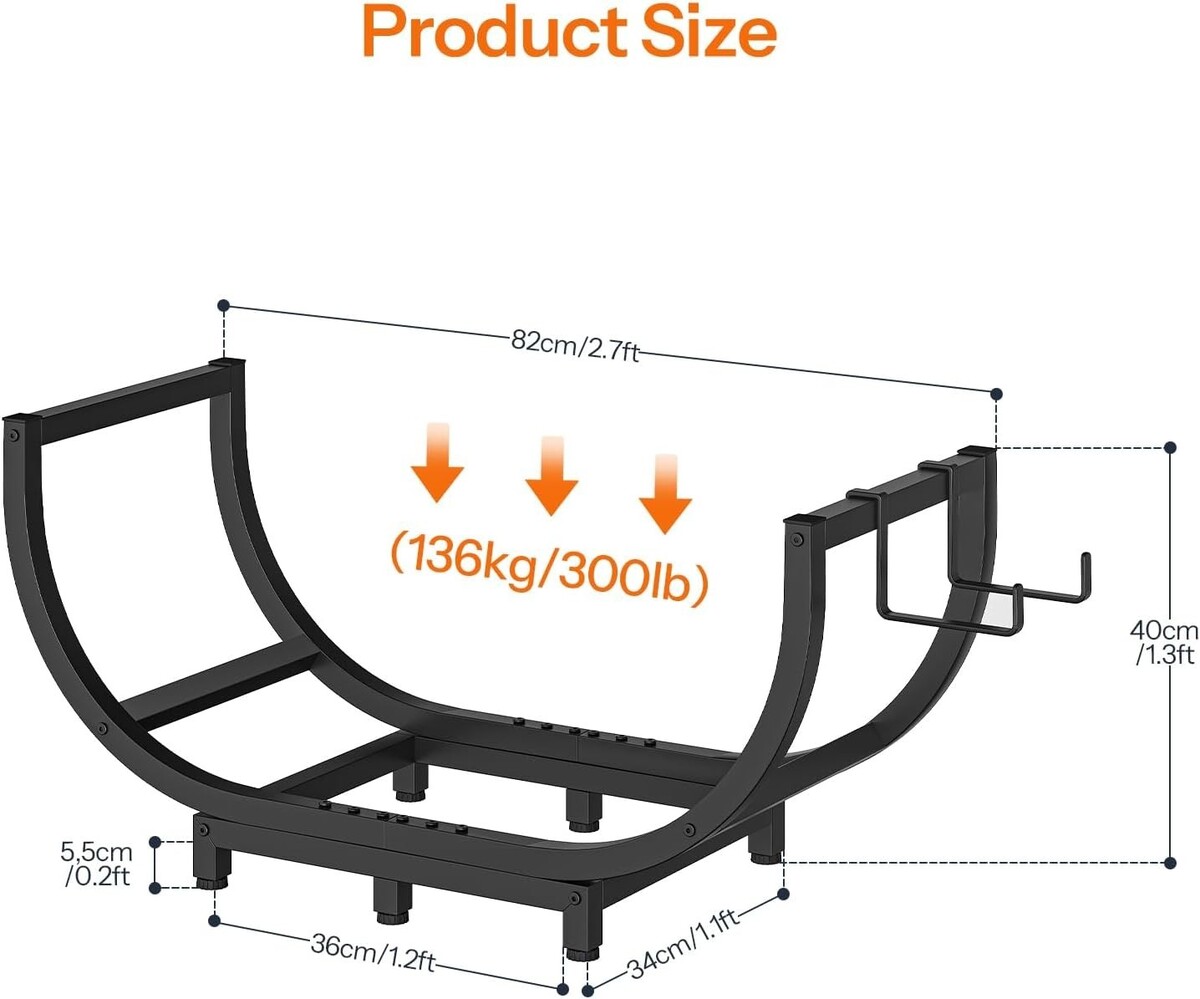 Elegant Arched Steel Firewood Rack ? Adjustable Easy to Assemble, 300 lbs
