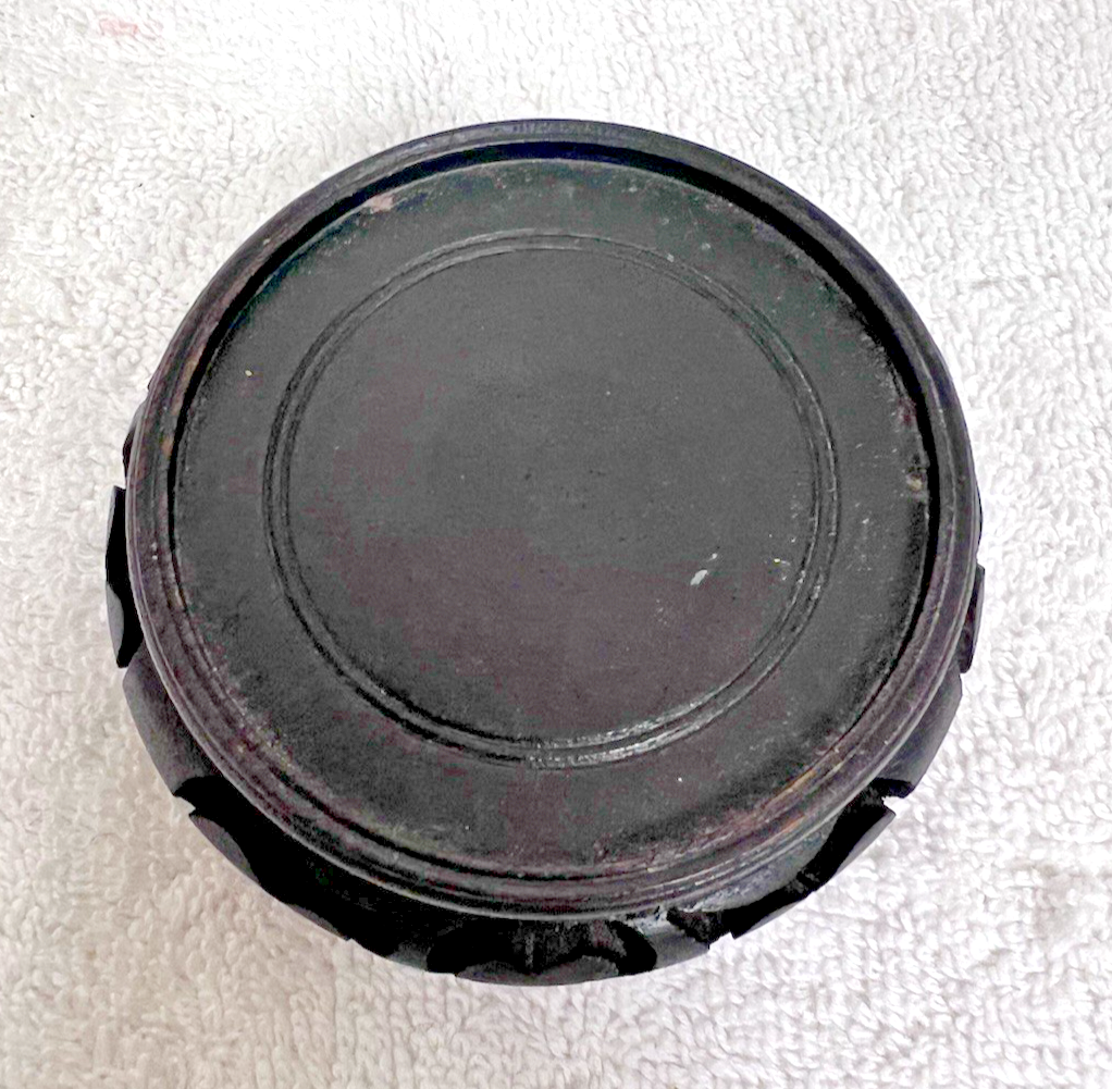 Antique Vintage Chinese 3 Leg Carved Dark Wood Vase Statue Bowl Stand 3 1/4"