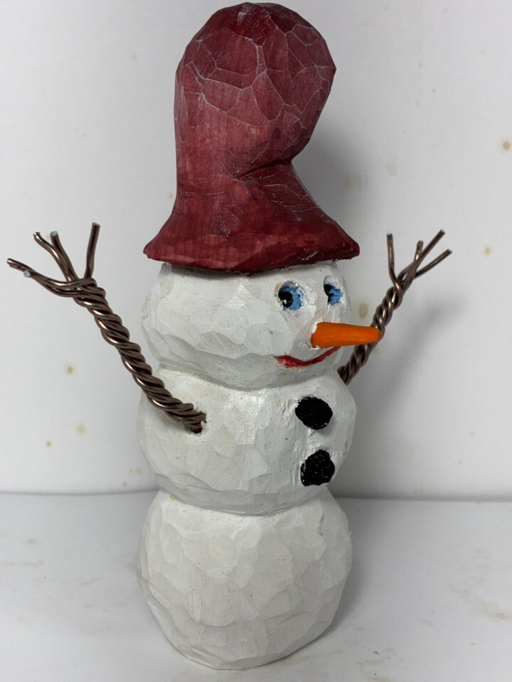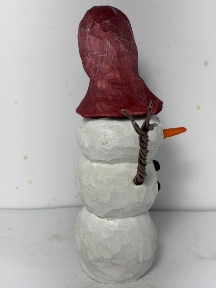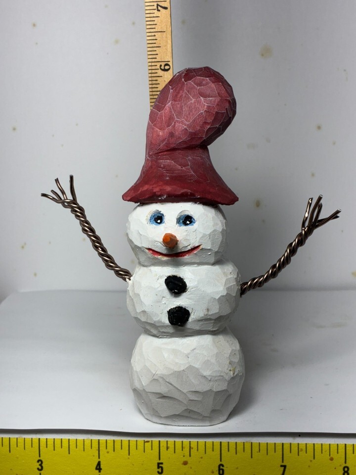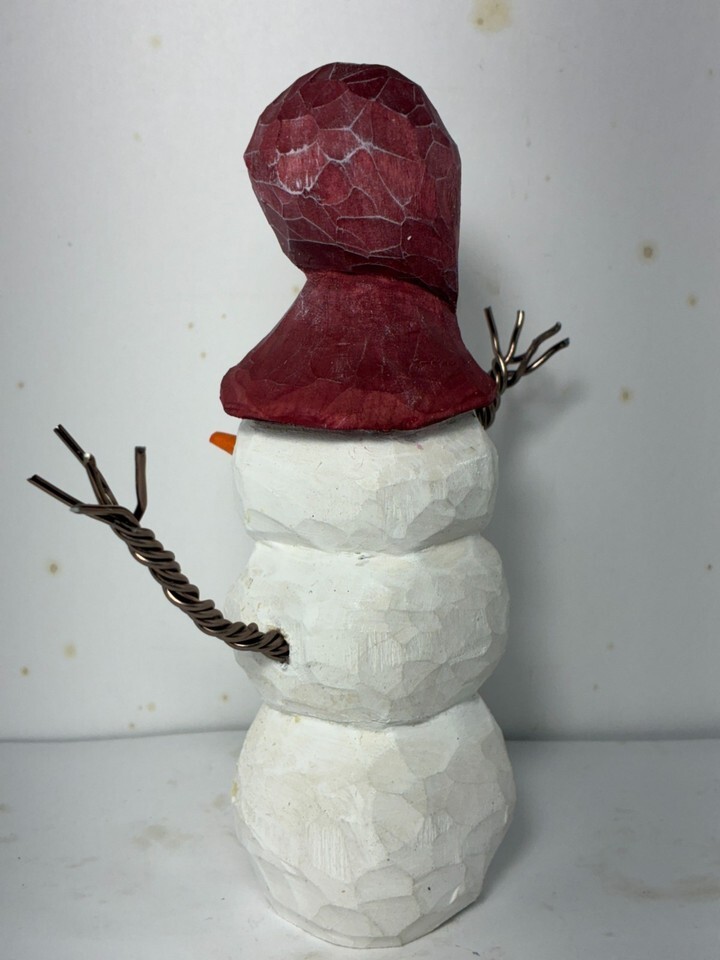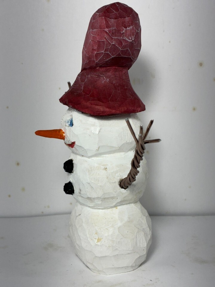 Hand Carved Winter Snowman with Hat, - Collectable Caricature Table Ornament