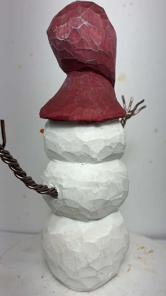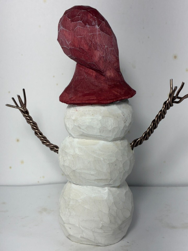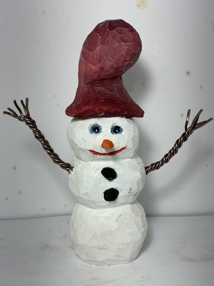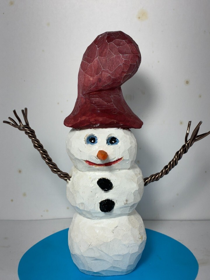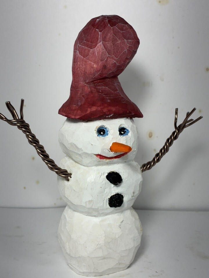 Hand Carved Winter Snowman with Hat, - Collectable Caricature Table Ornament