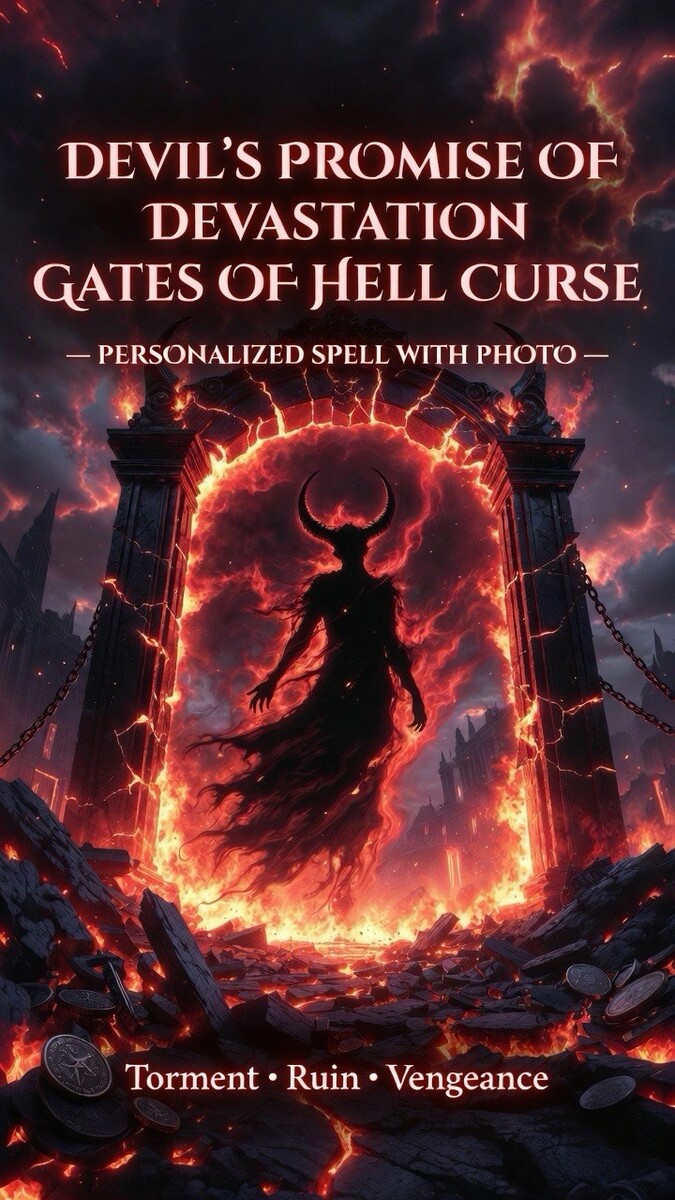 Unleash the full wrath of the Devil's Promise of Devastation Gates of Hell Dark Curse. ????? Exact your revenge and torment those who have wronged you with this potent, malevolent spell. Dive deep into the darkest energies to ensure your enemy pays dearly. ?? Choose the 3 torments that best suit your needs and focus the hellfire ? upon your chosen victim!
