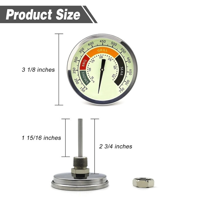 This thermometer gauge can fit BBQ smoker grills that has a 13/16? mounting hole for 1/2 NPT inserting on the grill lid, including all Oklahoma Joe?s, and some Char-Griller, Pit Boss, Masterbuilt, Dyna-Glo, Charbroil smoker grills and so on.