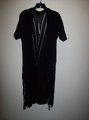 VENUE BLACK KNITTED SHORT SLEEVE KNIT VEST LONG TOP MEDIUM NWT
