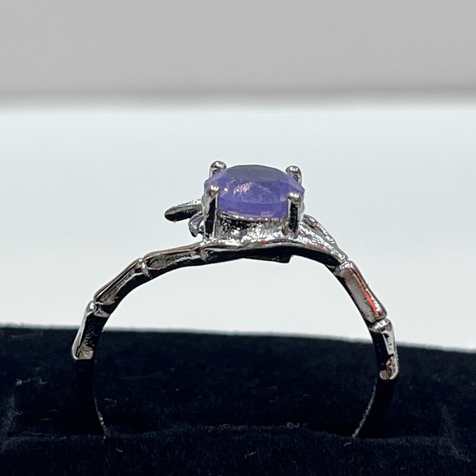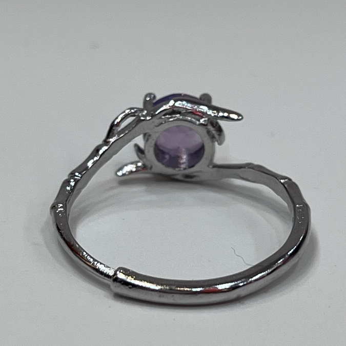 ? Purple Amethyst Round Ring | Silver Plated | 6mm | Bamboo Band | Adjustable ?