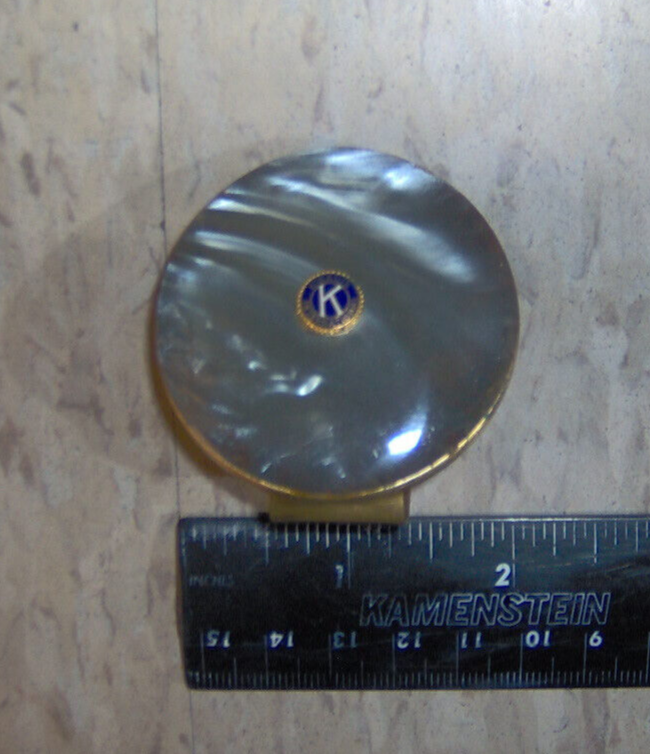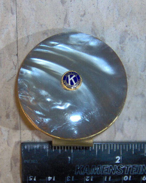 Kiwanis Club International Vintage 70s Vanity Mirror w/ Clip 2" mother of pearl