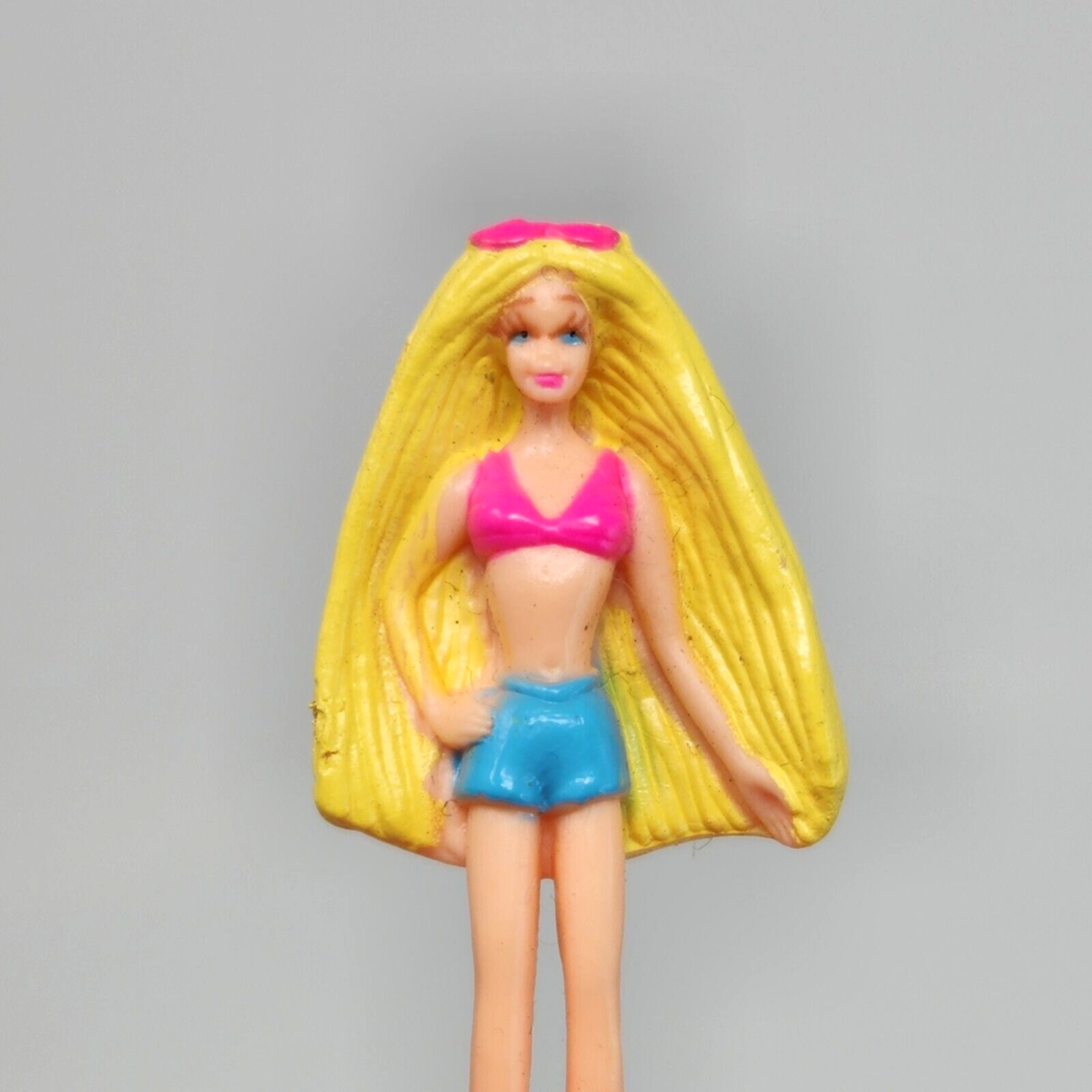 2" VINTAGE 1998 MINI BARBIE FIGURE FIGURINE RUBBER PINK BLUE BIKINI SMALL TOY