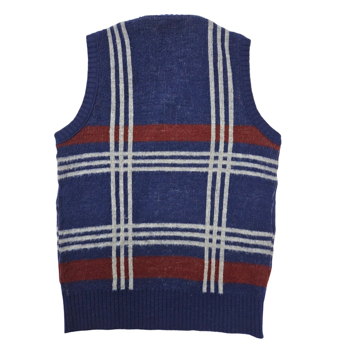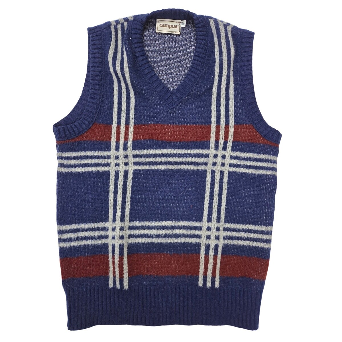VTG 1970s Campus Sweater Vest Red White Blue Acrylic Plaid Tall Man Sz M