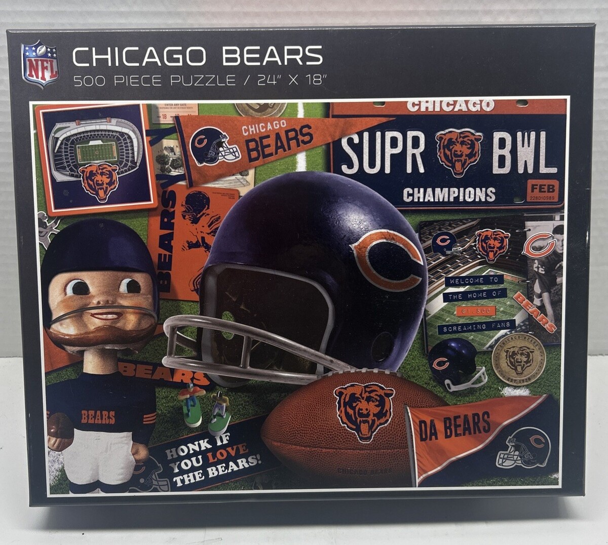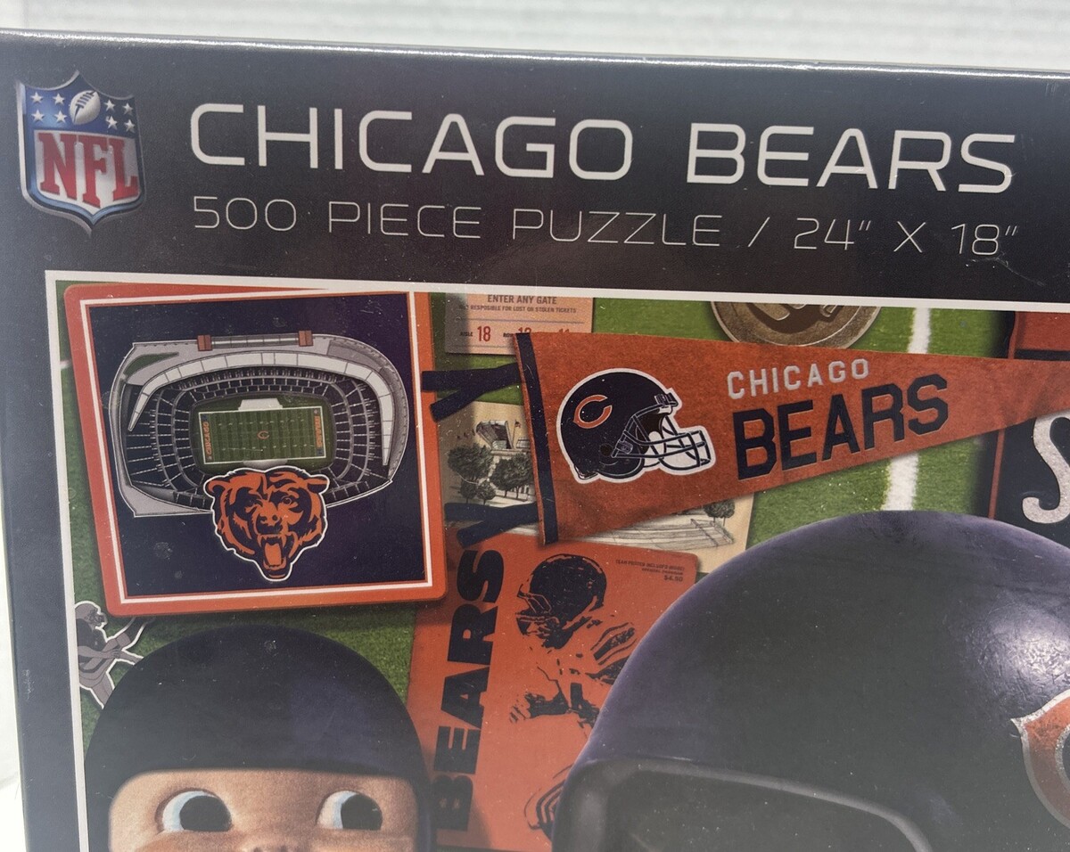 Rare Vintage Nostalgic Collage sealed Chicago Bears 500 Piece Puzzle 24” X 18”